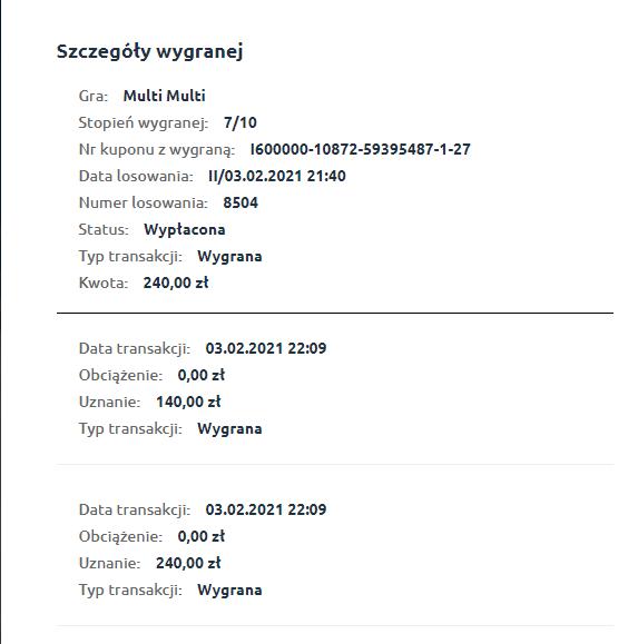 2- 4 zakłady bez plusa 10 liczb- 144 zł (7/10 i 5/10)