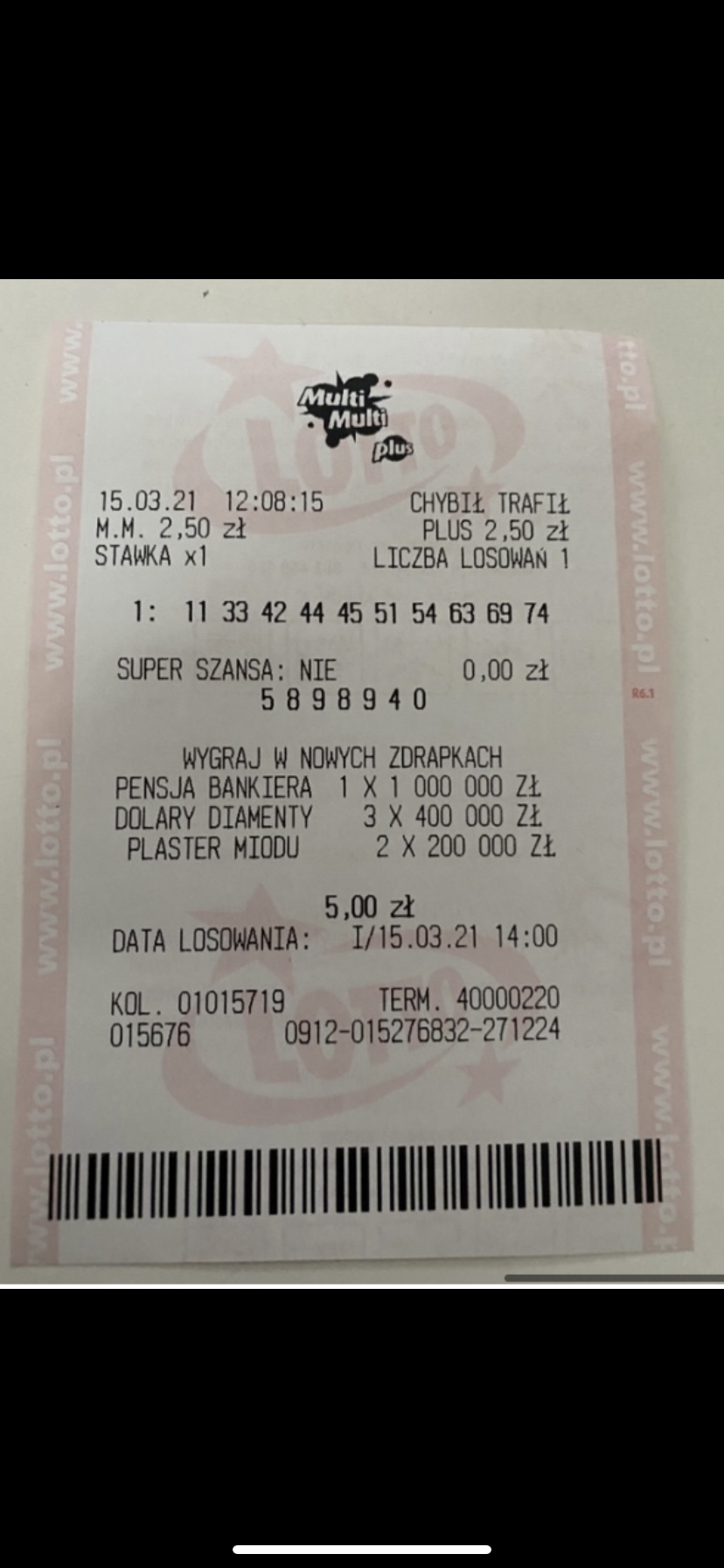 Wpadło 1/9 z plusem, moja najwyższa i pierwsza taka wygrana w tym roku a gram codziennie, jak narazie najgorszy rok a topi się codziennie, chyba zbierają na tarcze i wygrane odcinają jak tylko się da, coś okropnego.