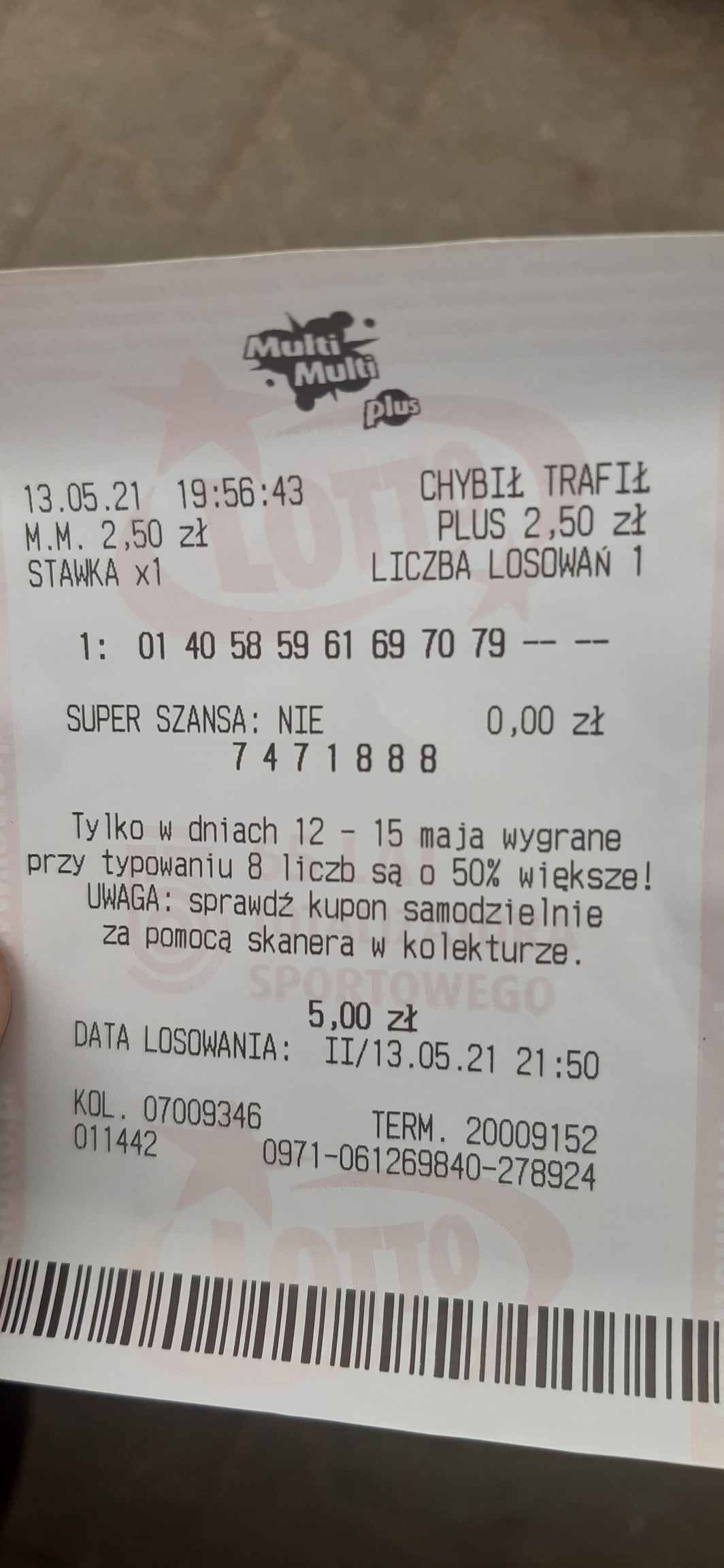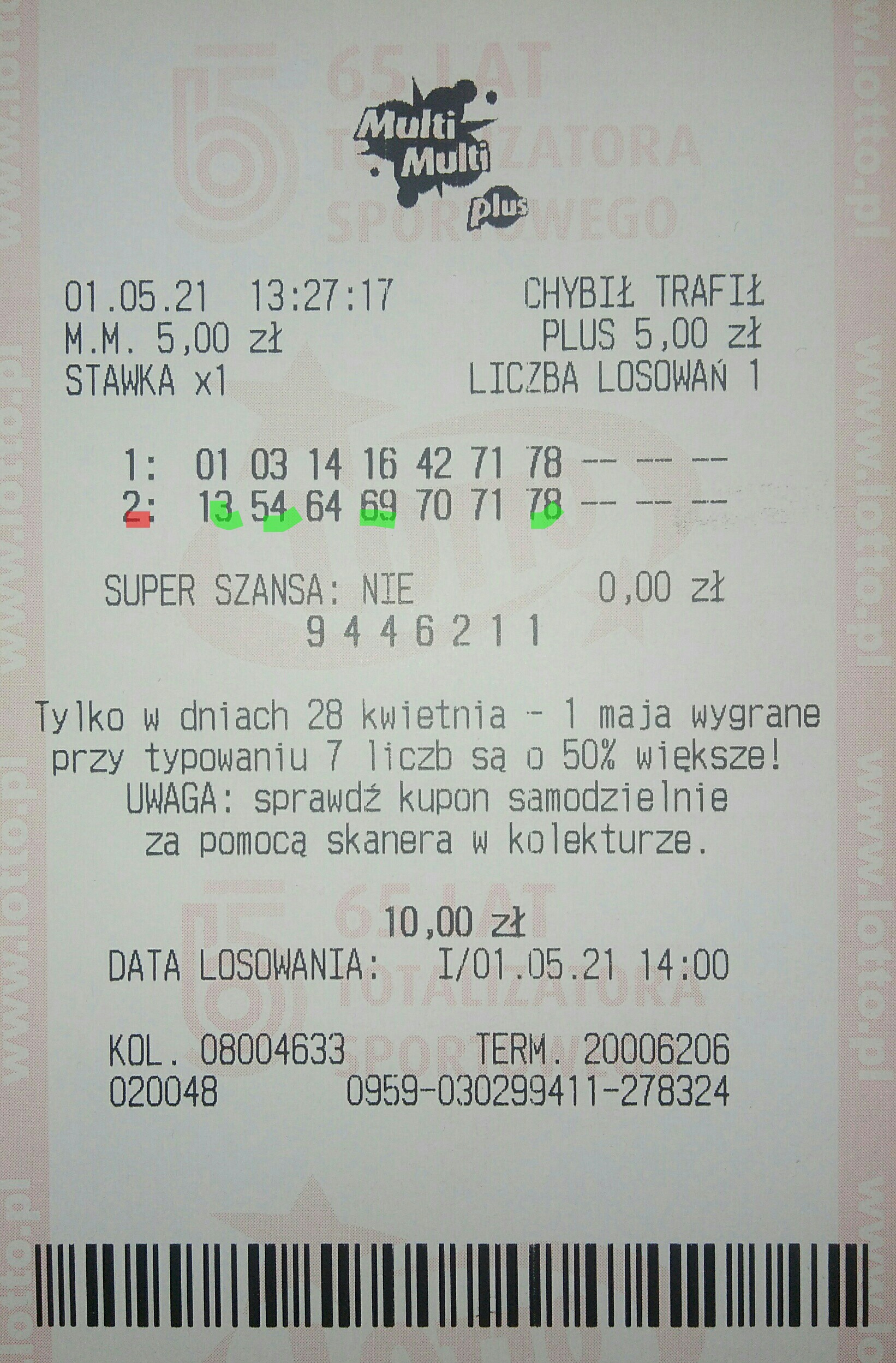 Ja we wczorajszym wieczornym losowaniu i w dzisiejszym trafiłam tylko 3/7 CT