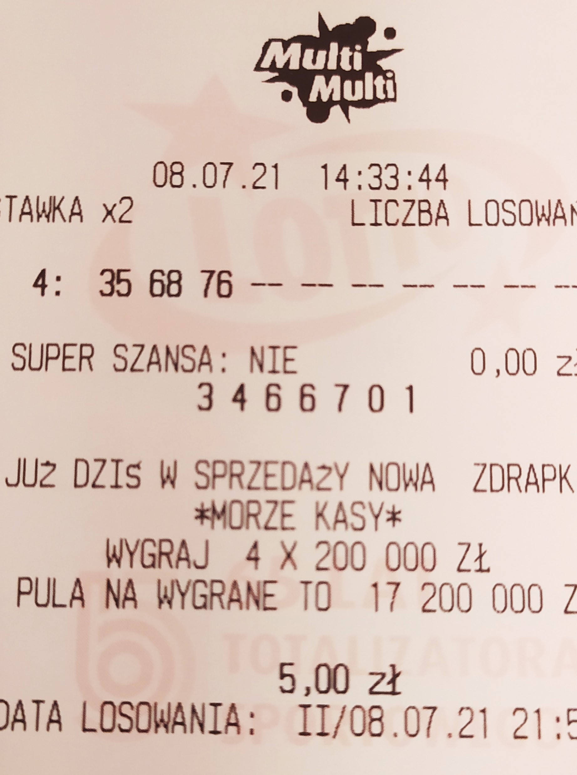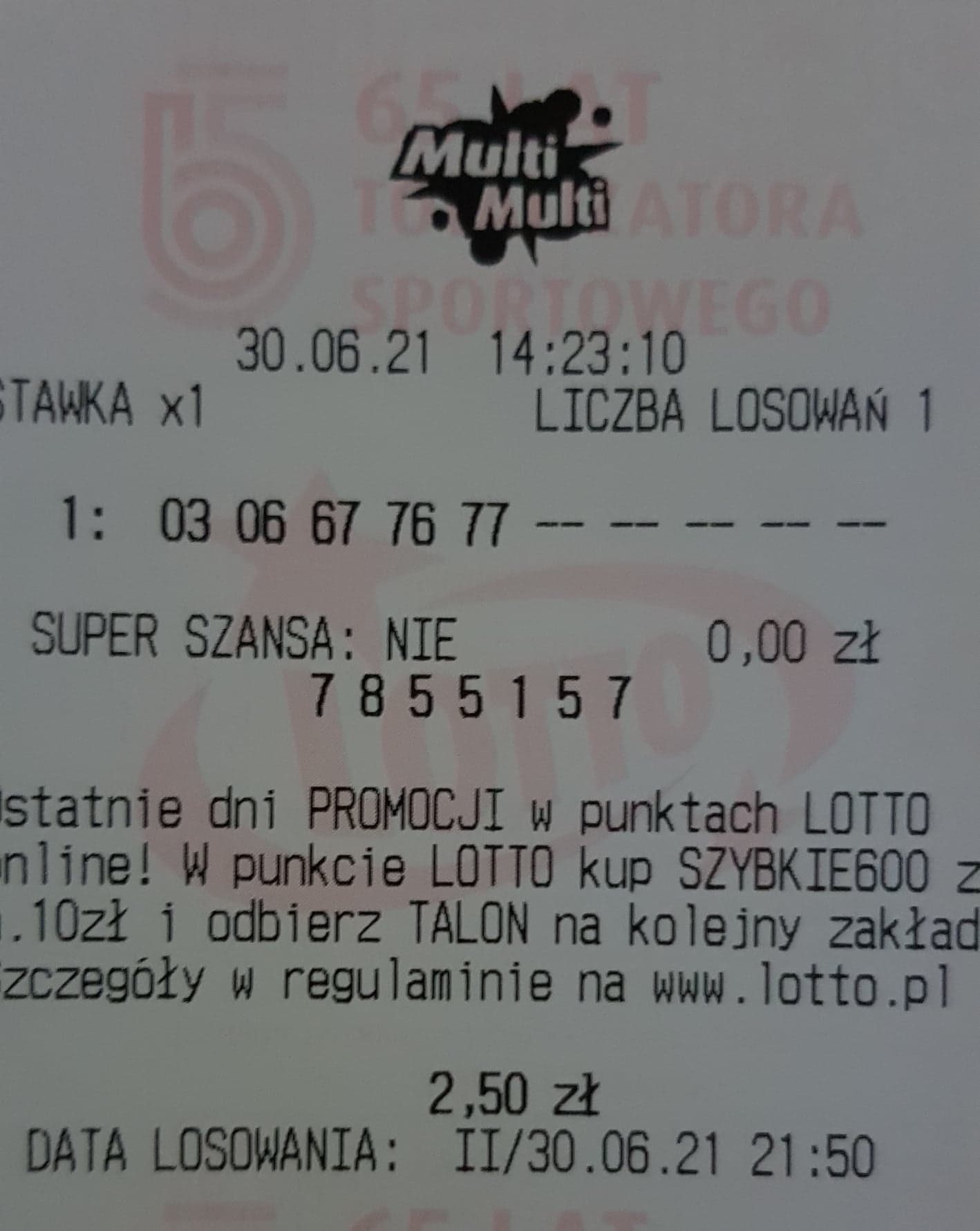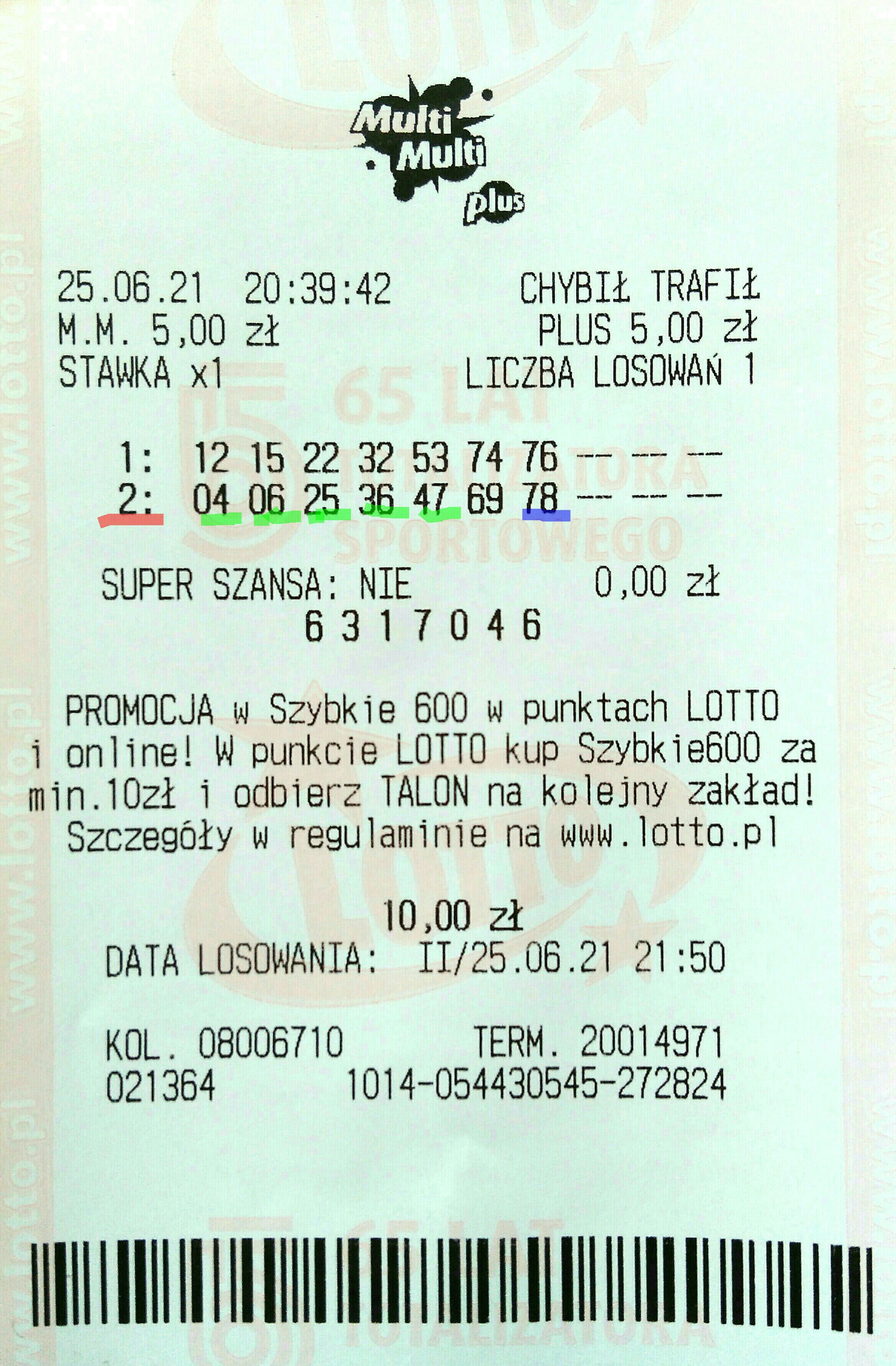 W ostatniej promocji na 7-ki po raz drugi udało się trafić 6/7 z Plusem