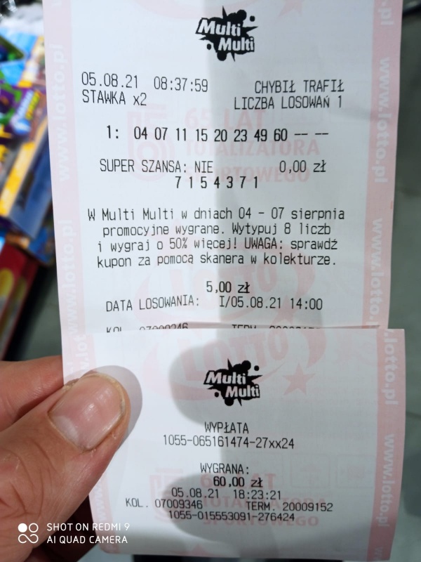 Dodano po 2 godzinach 30 minutach 55 sekundach:Wieczorem powtórzony kupon i wpadło 2/8 Z plusem