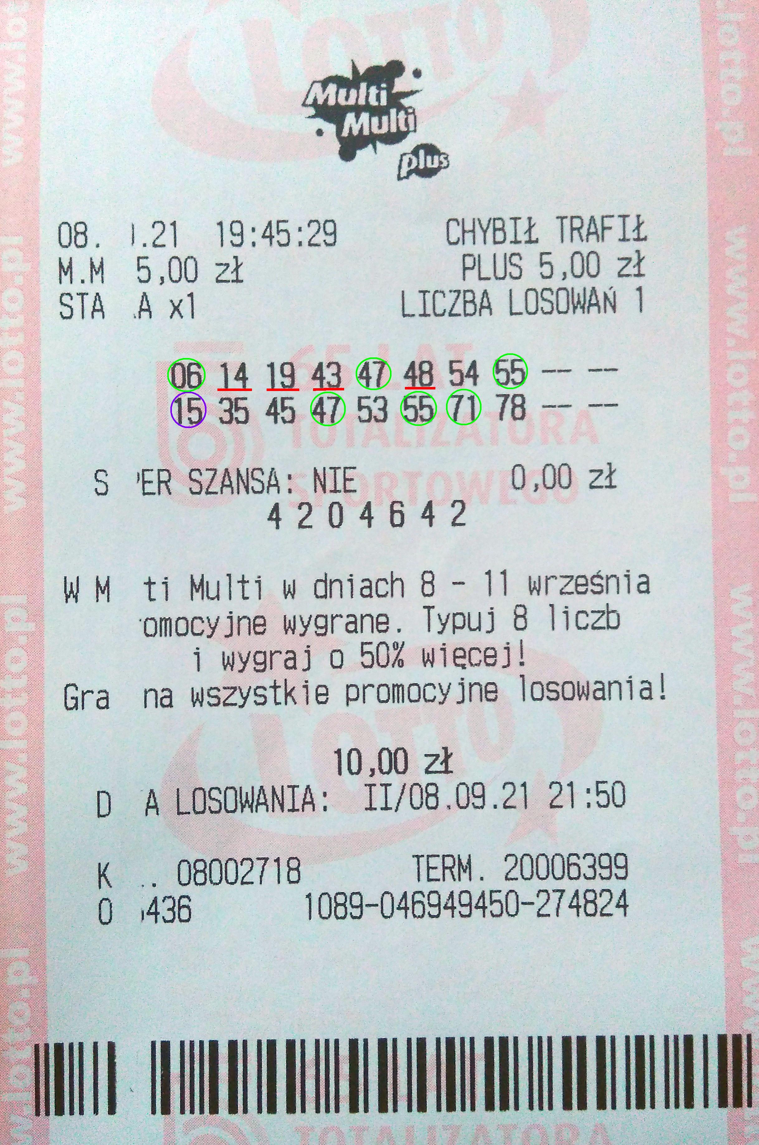 U mnie też 21 zeta, ale już w wieczornym losowaniu