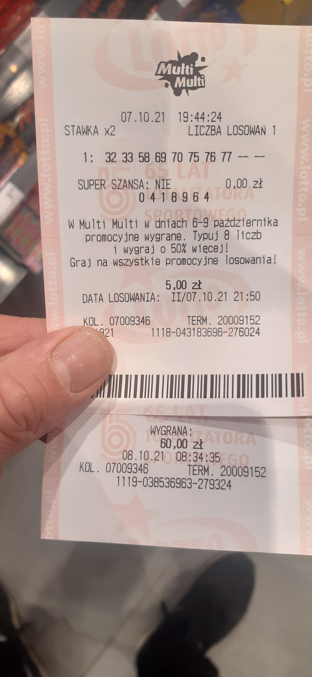 dzisiaj w multi obydwie twoje dwójki zostały wylosowane 43,57 i 37,54