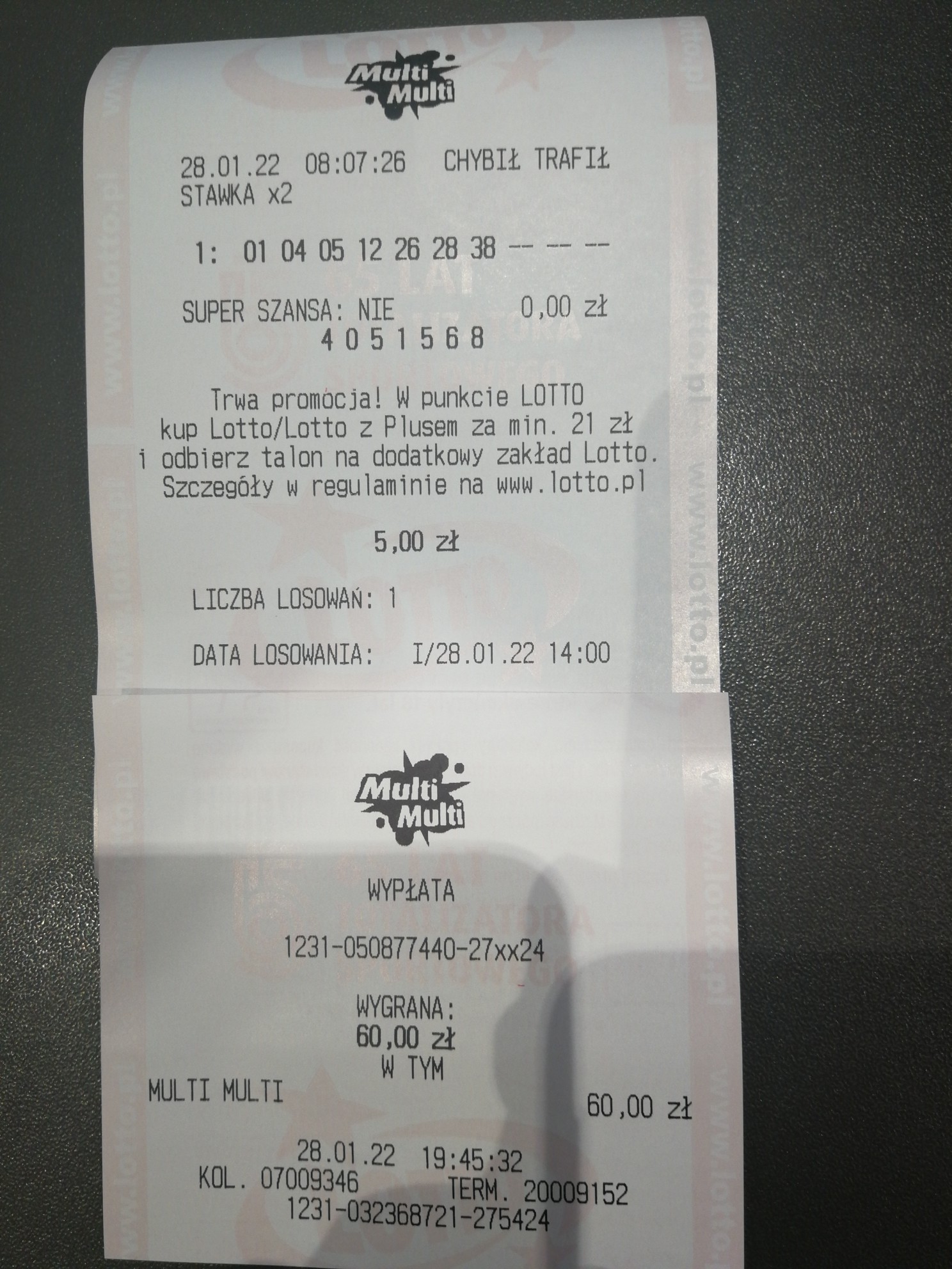 Witam. Odstawilem zdrapki i skupilem sie głównie na multi multi. Juz pierwszego dnia grania wpadlo mi 216 zl. 3/3 stawka x4. To mnie zachecilo do dalszej gry. Szukam sposobu na regularnie wygrane, nie duze ale czeste.