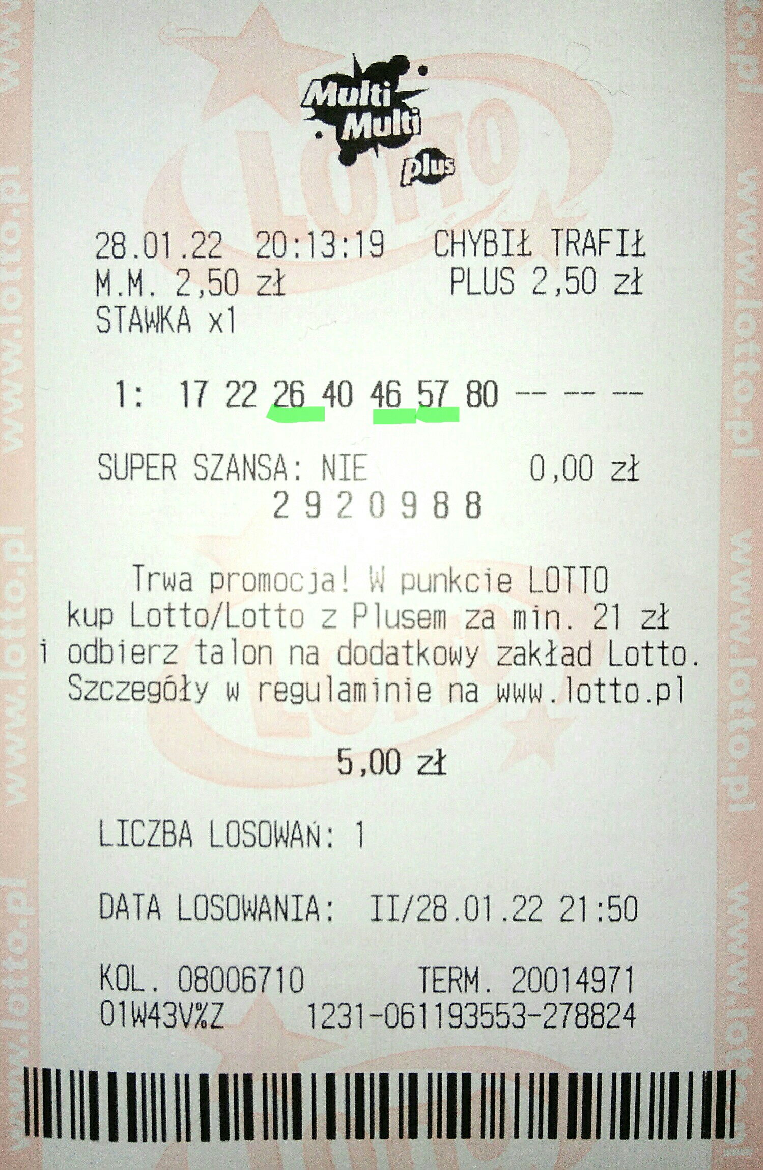 U mnie ta promka to porażka i oczywiście dzisiaj miałbym 5/7