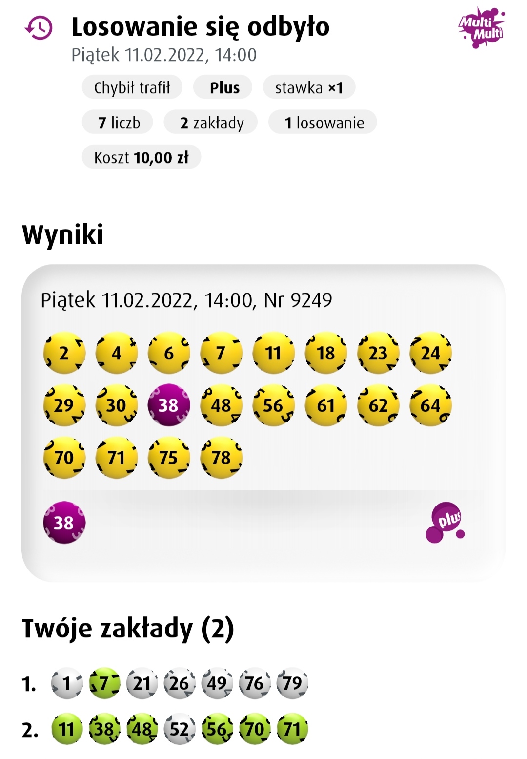 Gratuluję! :o Widzę, że 1 liczby zabrakło do sporej kasiory, aj, szkoda, że maszyna lepiej nie pokręciła... :mrgreen: