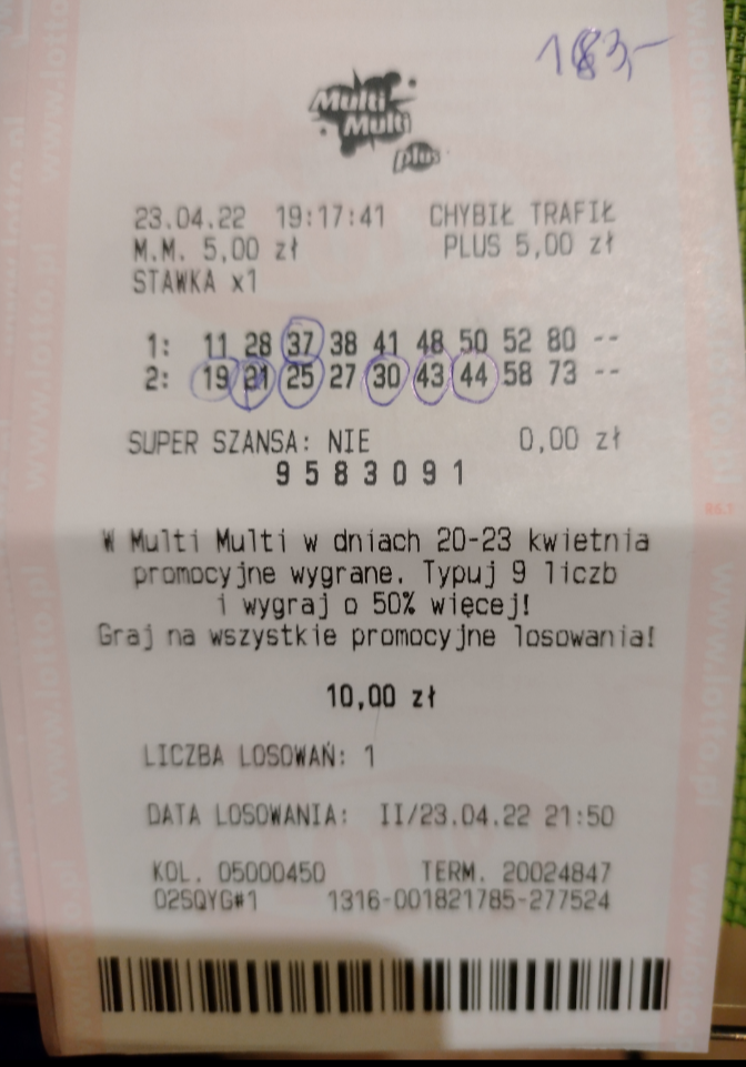 Zagrałem w promocji na 9 liczb. Wysłałem kupon na chybił trafił ..i tu odezwało się moje niebywałe szczęście - nie trafiłem ani jednej liczby. Sukces!!!