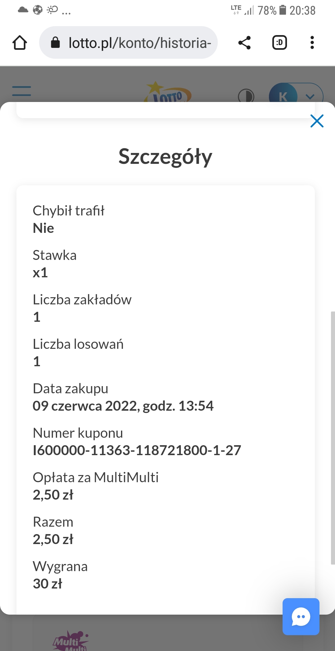 Promocja 8 okazała się całkiem niezłaDS1987 pisze: ↑09 cze 2022, 19:18Hmm po 2 losowaniach cieżko było o optymizm , tylko 1 x 4/8 - 6 zł i uwaga 10 x3/8 (nic nie płatnych ) na szczęście o 14 w 3 losowaniu padło 6/8 ( 90 zł ) z mega obokiem na 7/8 - mam 21 pada 20 i 22 :/ . Na 5 losowań do końca wróciło się póki co 96 zł więc już jest lepszy bilans niż w 7temkach