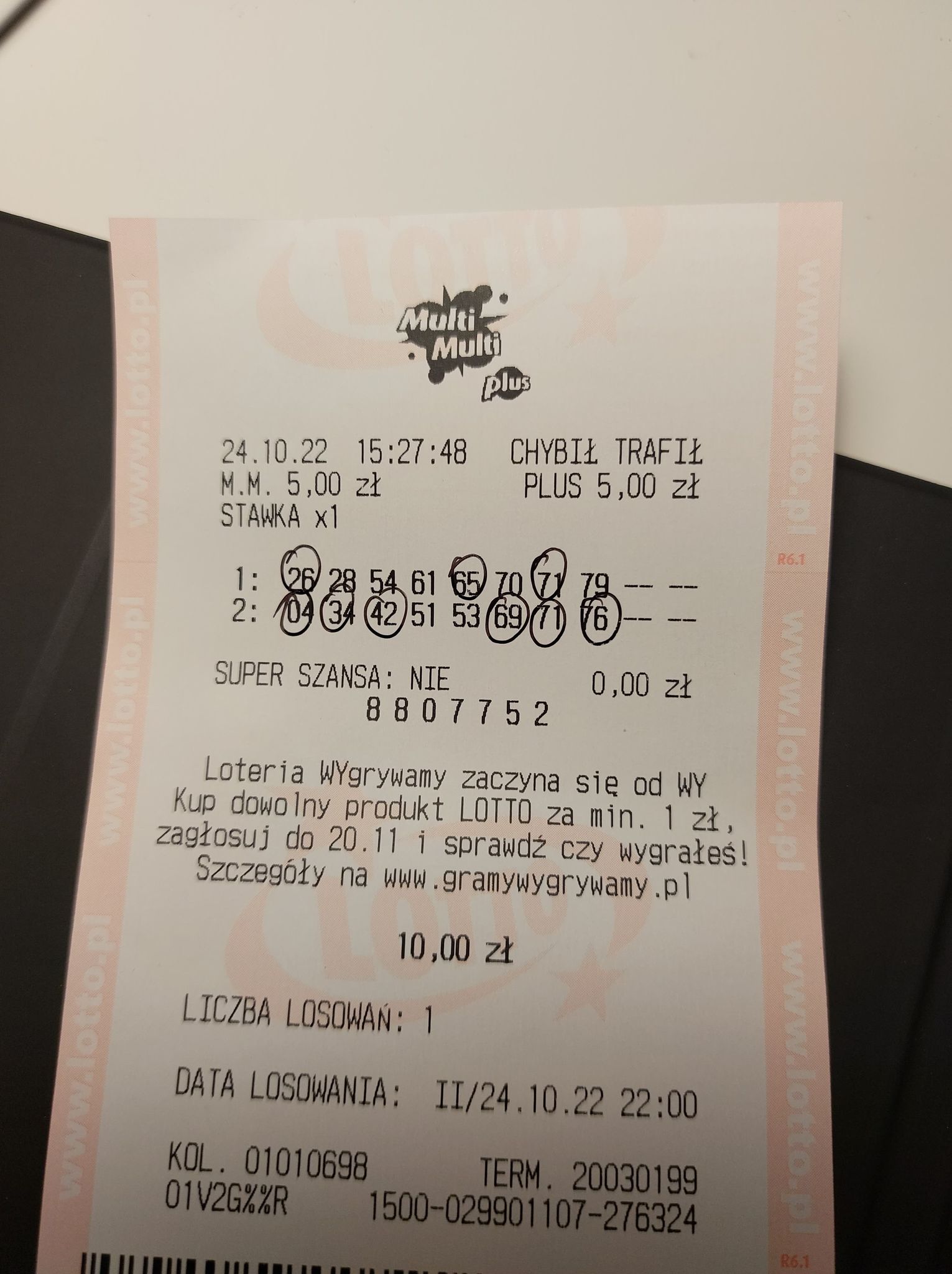 Dziś o 14 udało się trafić 6/9, szkoda, że nie wpadł plus ale nie ma co narzekać :D