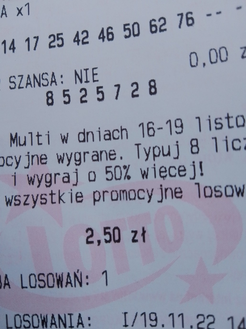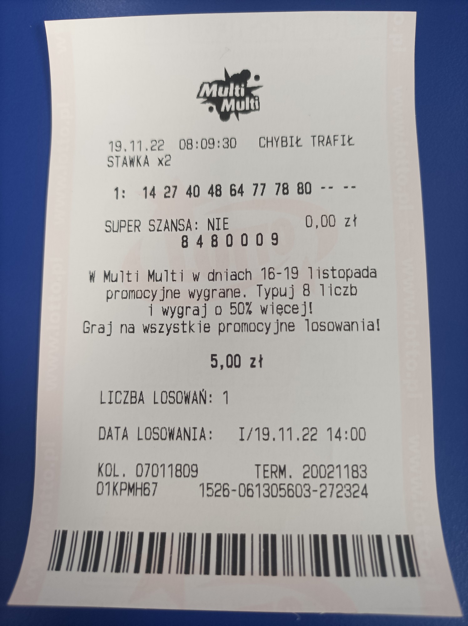 Dziś w losowaniu o 14 trafione 5/9 z plusem, może nie za wielka wygrana no ale zawsze coś :)