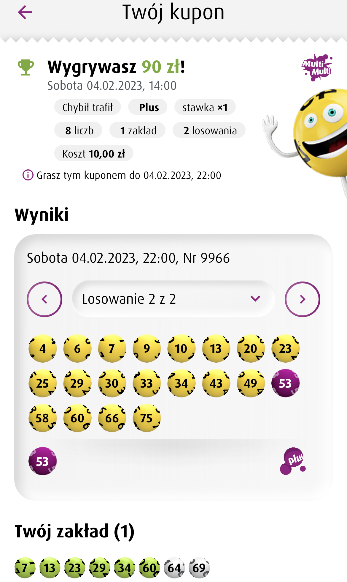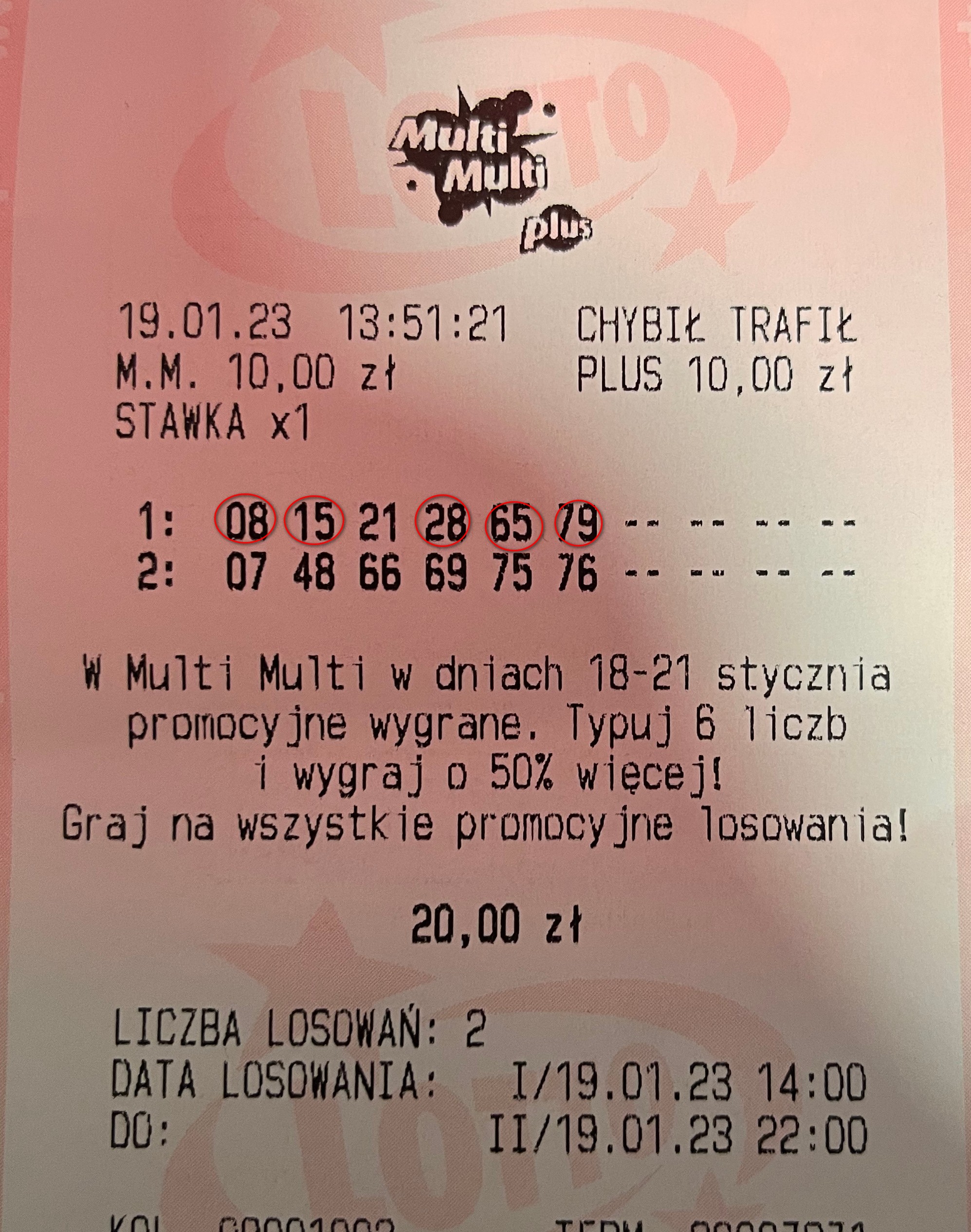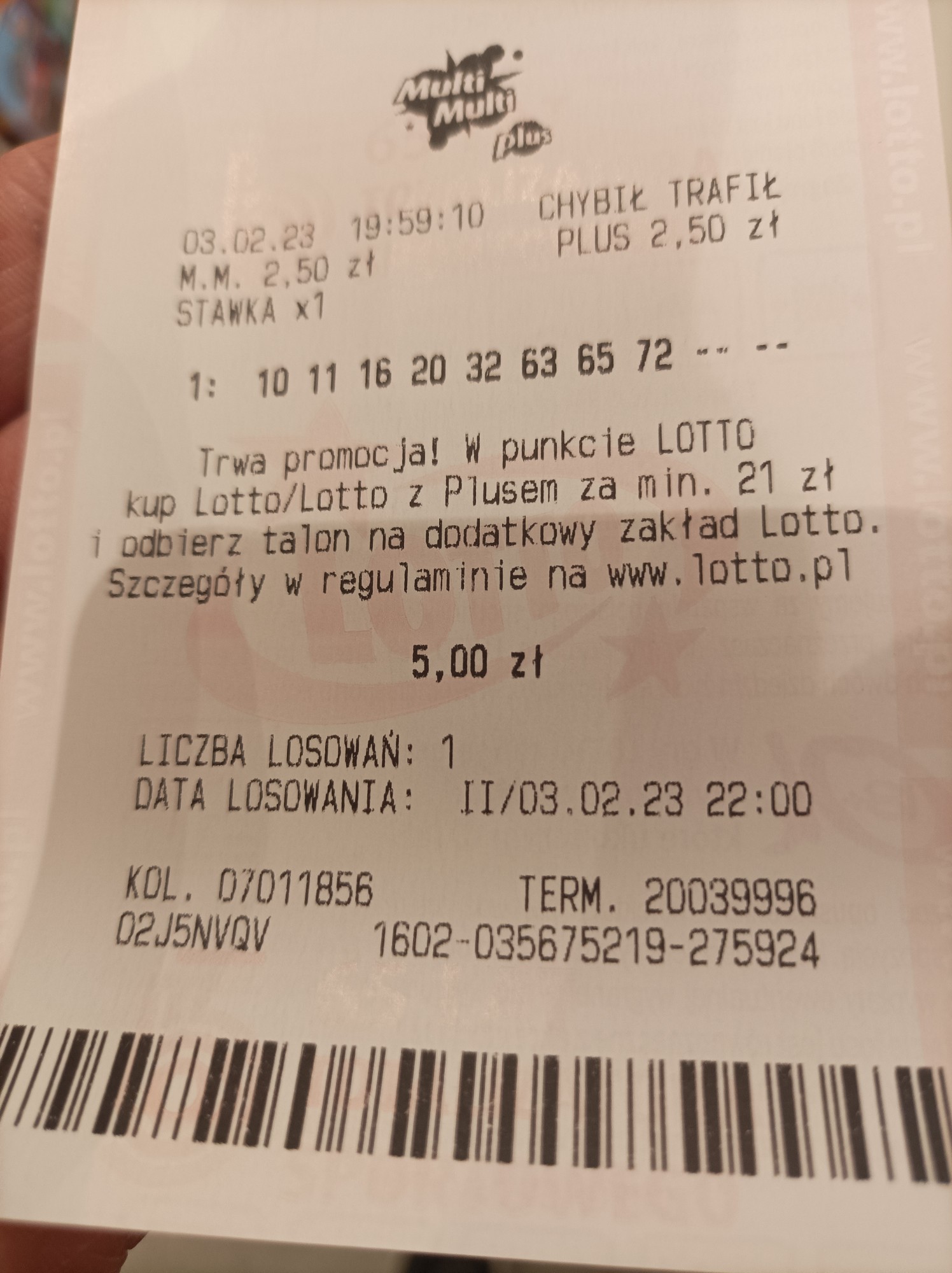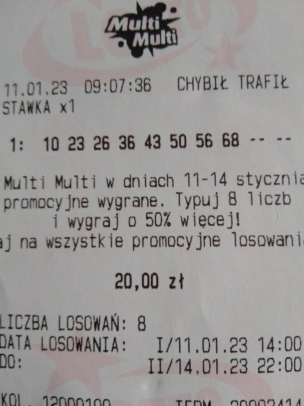 Na zdjęciu kupon uaktualniony na wieczorne losowanie, choć już nic nie weszło.