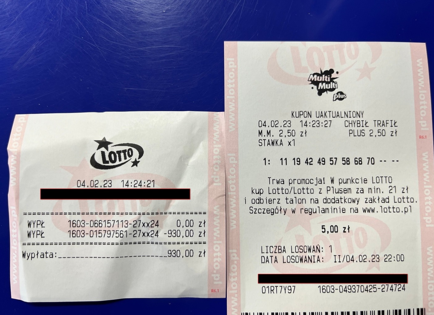 Z 3 lutego (II losowanie) - 30 zł i z 4 lutego (I losowanie) - 900 zł