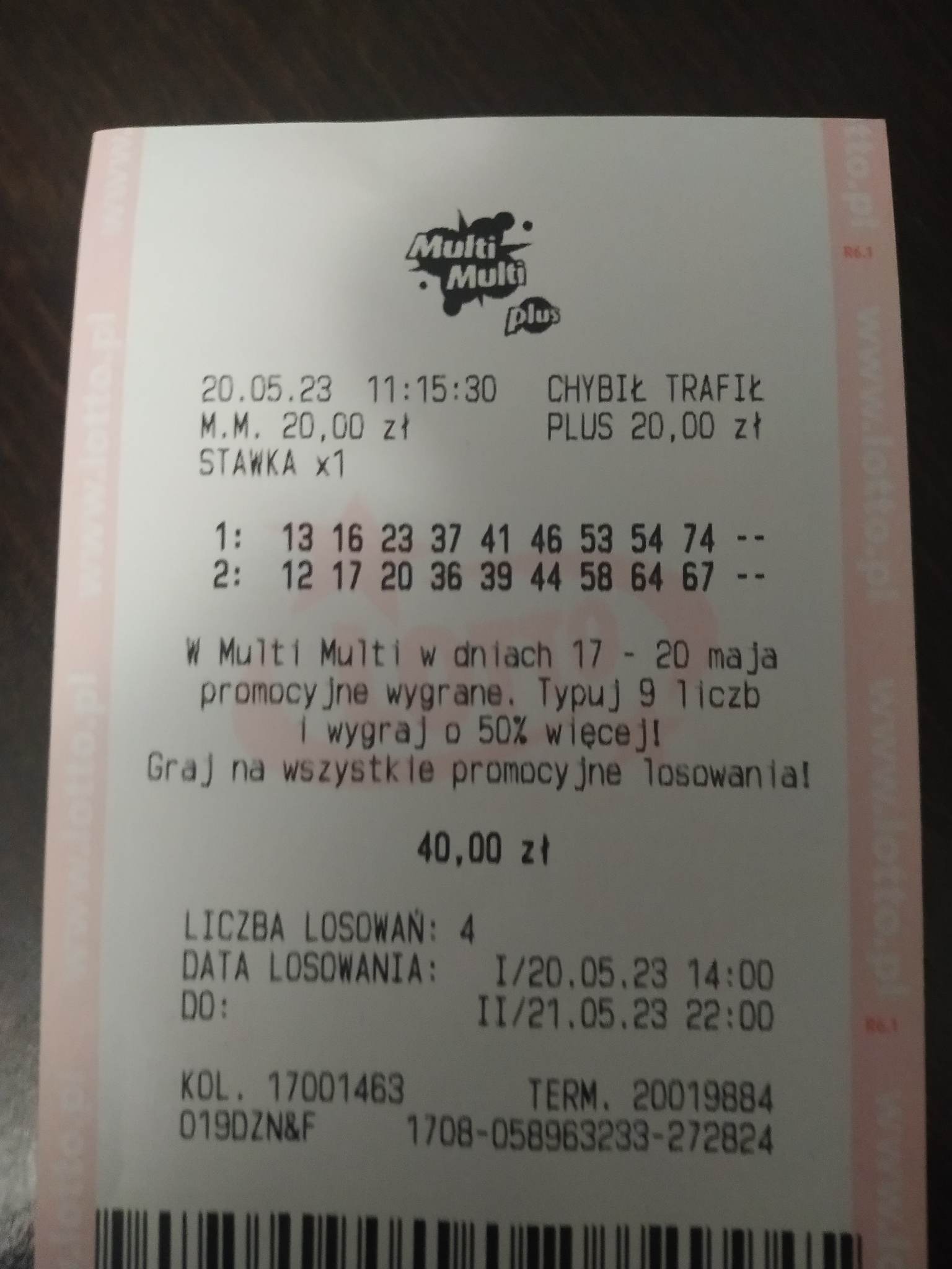 A ja wstawię szczęśliwy kupon mamy z sobotniej promocji. Bo ja nie gram za często w Multi, ale może zacznę