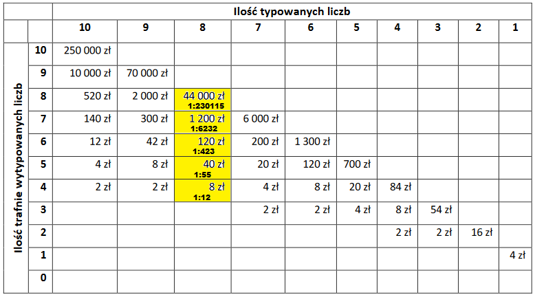 Widzieliście tabelę wygranych w tym regulaminie? Za trafienie 8/8 z plusem jest wypłacana wygrana jednocześnie za plusa i za zwykłe 8/8? ta trzecia tabela by to sugerowała... a ja myślałem, że jak trafię 8/8 z plusem to dostaję tylko wygraną z plusa a nie że ona jest sumowana z wygraną zwykłą...