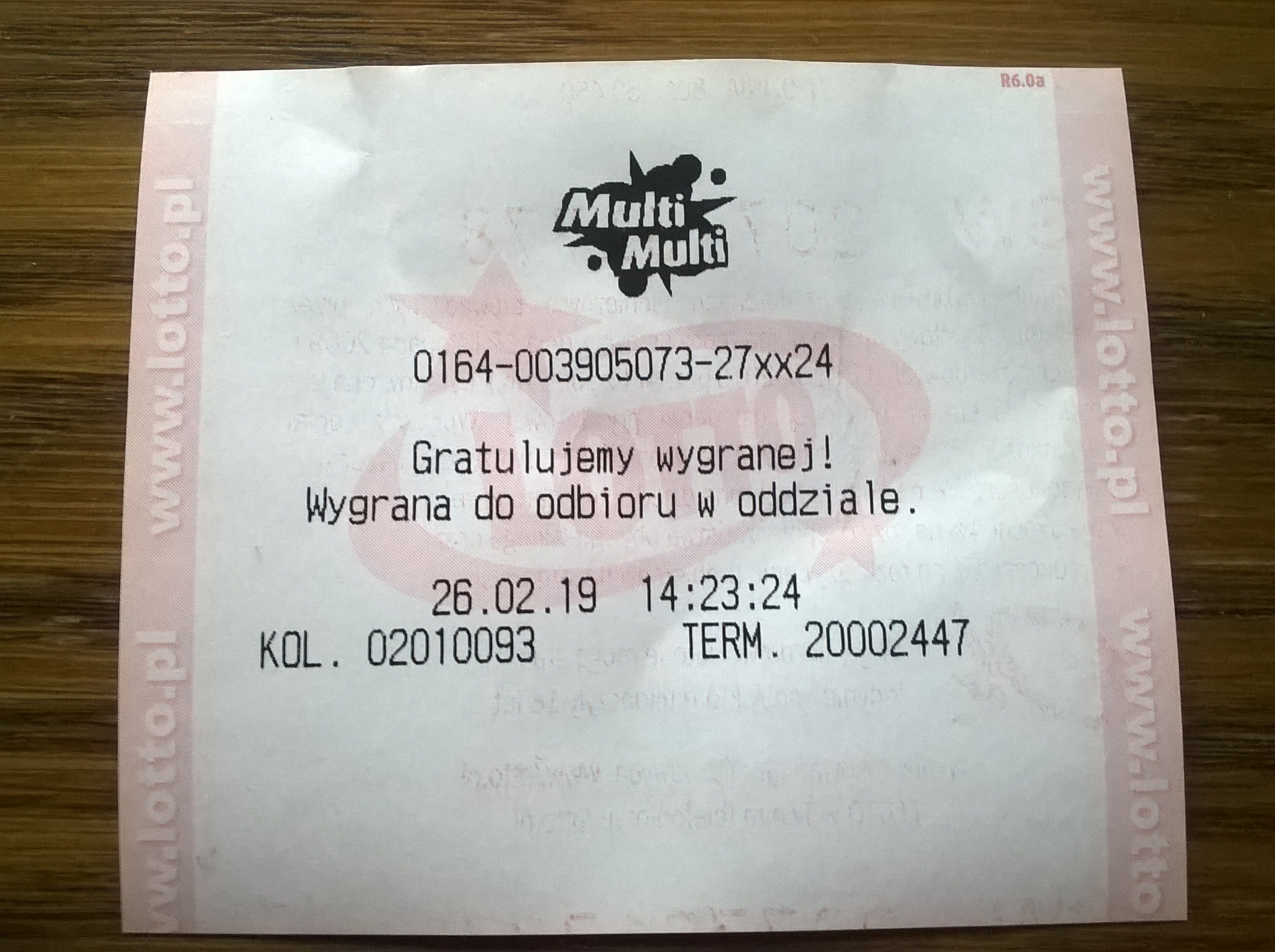 Pierwszy raz w zyciu dostalem karteczke z lottomatu ze zapraszamy po odbior wygranej do oddzialu glownego,fajne uczucie ;)