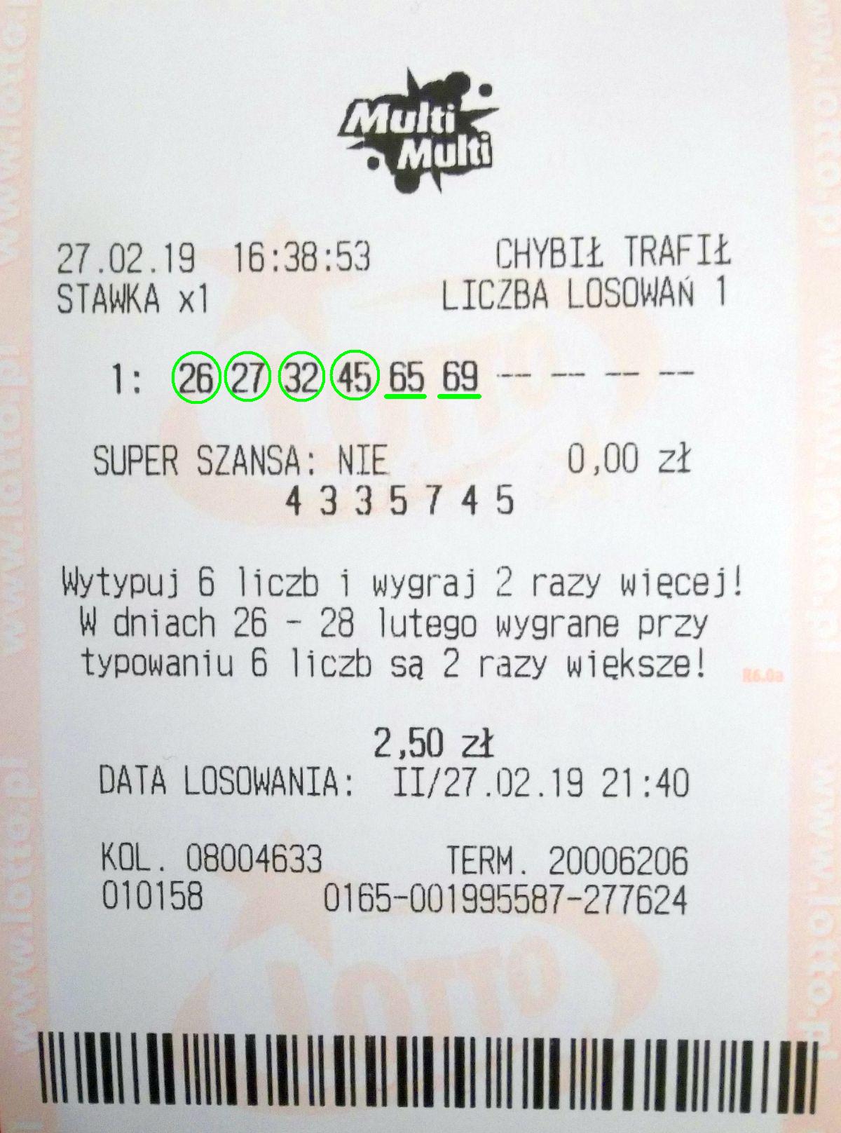 Szkoda tylko ze tak malo wrocilo:(Nutaharion pisze: ↑27 lut 2019, 23:27Po wygranej @matysa puściłem 10 zakładów, ze stawką 10 na 2 losowania. Bez plusa.