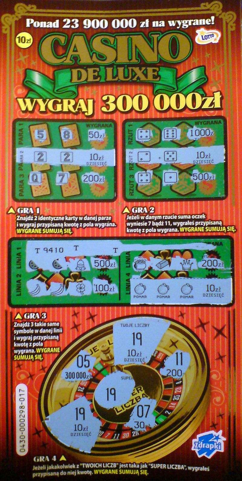 Ja też raczej nie kupuję zdrapek gdzie nie ma juz głównych. Czasami to błąd bo u mnie w kol ostatnio wysyp wygranych typu 700zł w Diamentowym7, 500zł w Milion w Banku itp, a tak jakby brał normalnie to kto wie
