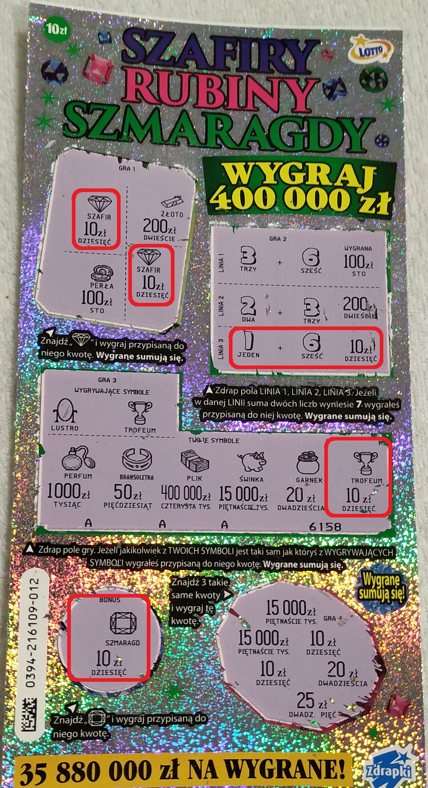 Przez cały tydzień wybierałem z paczki po 1=2 szt. (nr po kolei) i bilans tragiczny 8 pustaków i 1x 10zł. czyli 80zł w plecy.