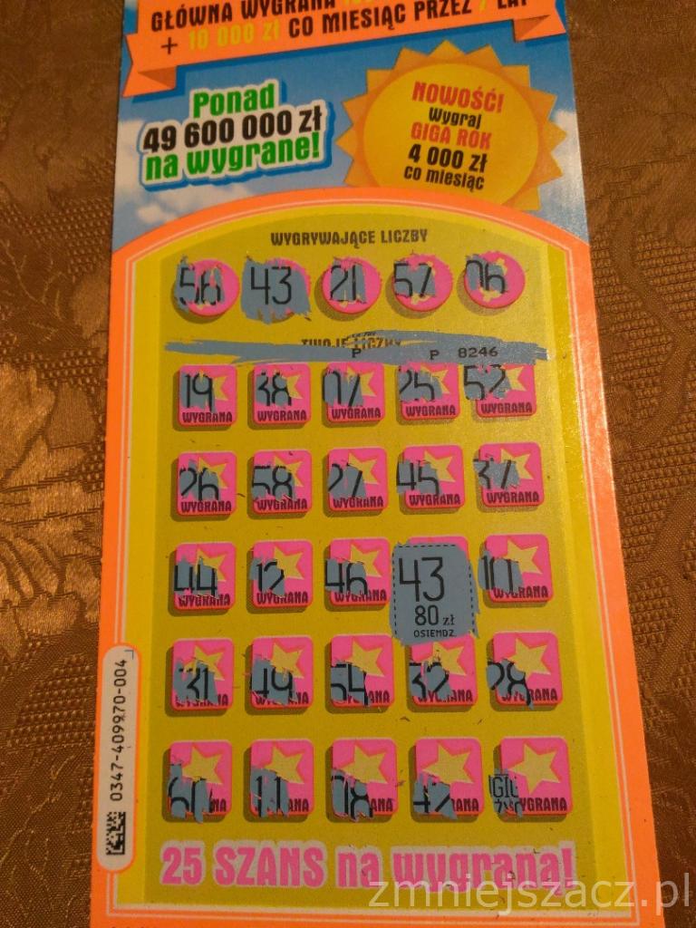 Wygraną 40 zł (w Milionie w banku) wymieniłam na nr 007, w którym weszło kolejne 40 zł