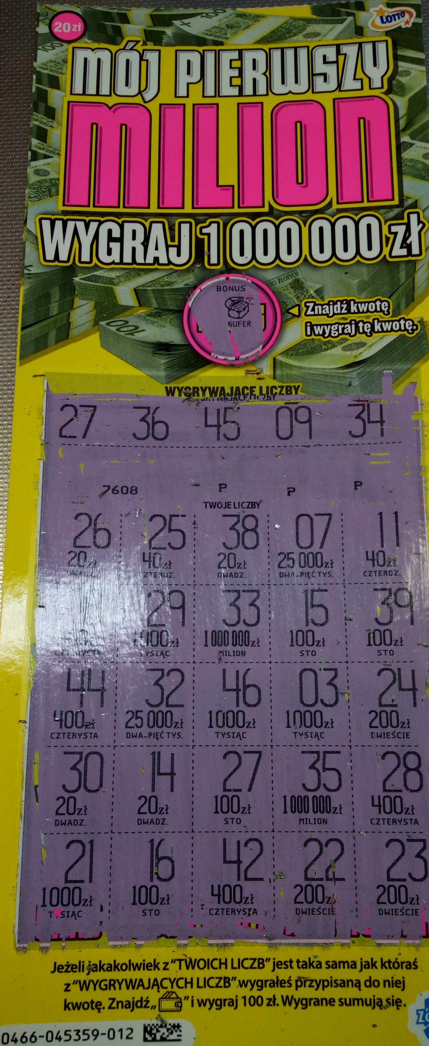 Kolejna szczęśliwa zdrapka. Strzał w nieparzysty nr 9 (wybór z pełnej paczki) zaoowocował symbolem portfela ze stówą