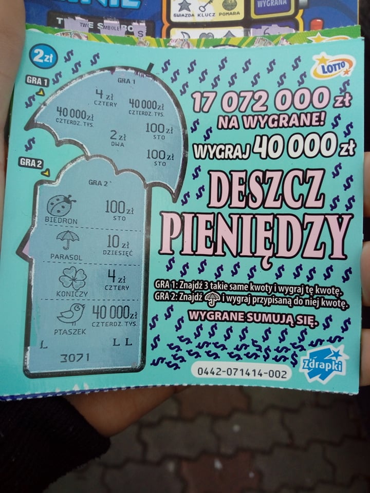 W zdrapkach za 2 zł dajemy zdjęcia od 15 zł, ale tu następny stopień to dopiero 30 zł, więc zdjęcie MZ może zostać.