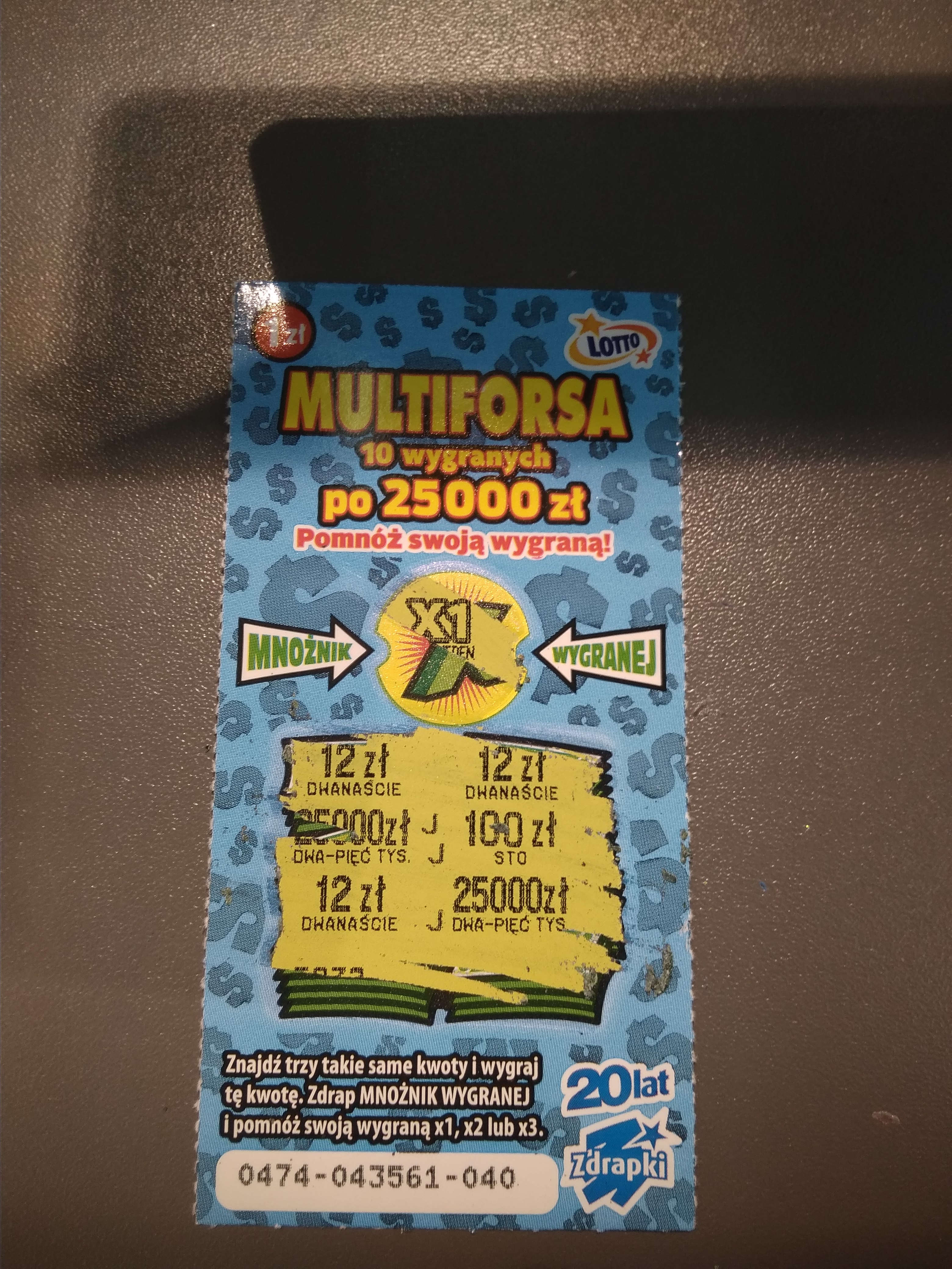 Identycznie stary, juz ktorys raz kojarze taki post - a i rozumiem. Na 7 szt. tylko 1 zwrot, reszta puste multiforsy. A ostatni tydzien to zwykle branie naraz zdrapek za 30-50 PLN i co, czasem wszystko 0.