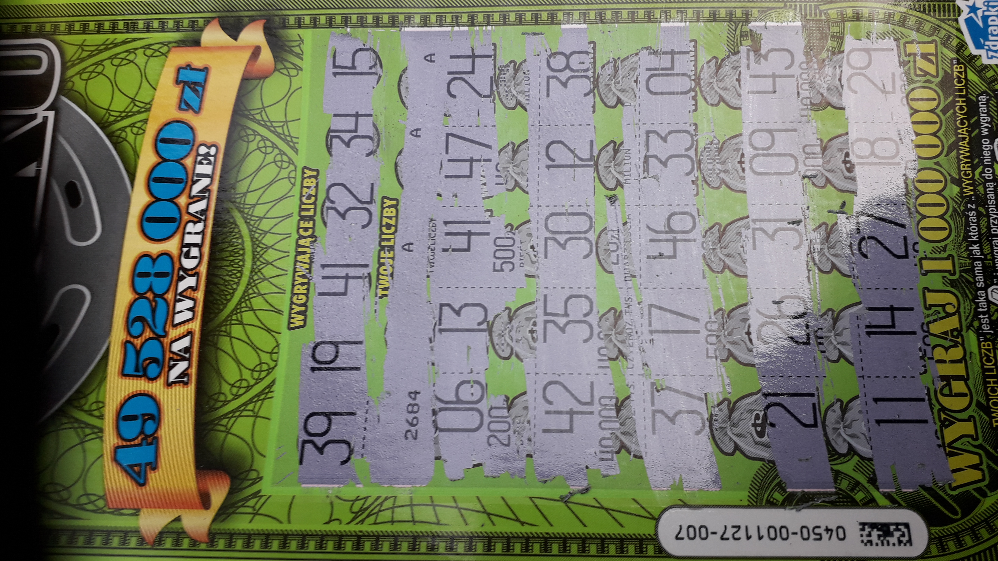 U mnie wczoraj pod tym samym nr 40 zł (2x 20 zeta pod sztabką) ze zdrapkomatu