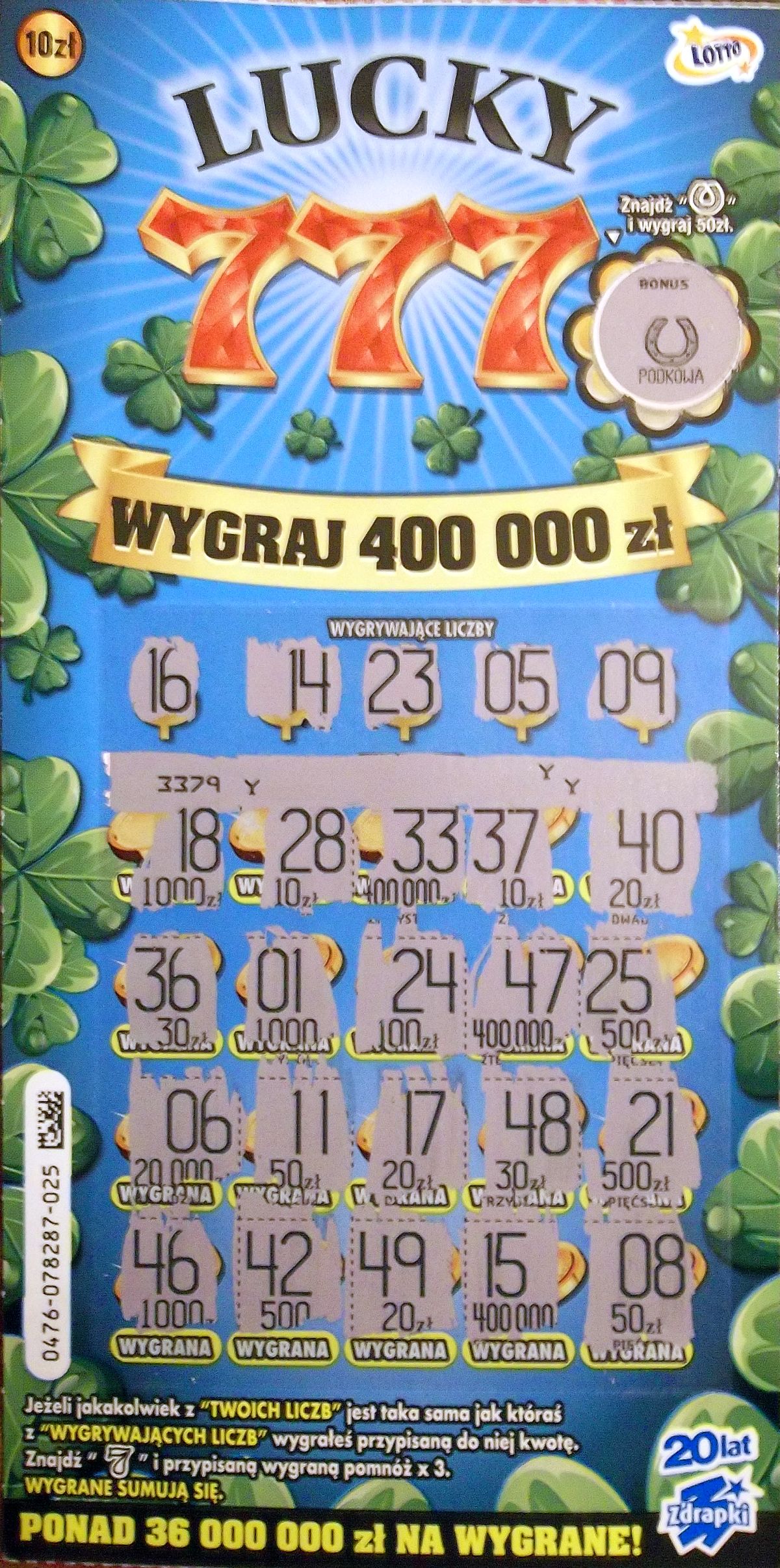 Oj chyba odwrotnie... Bo zdrapka z podkową ma numer 025.