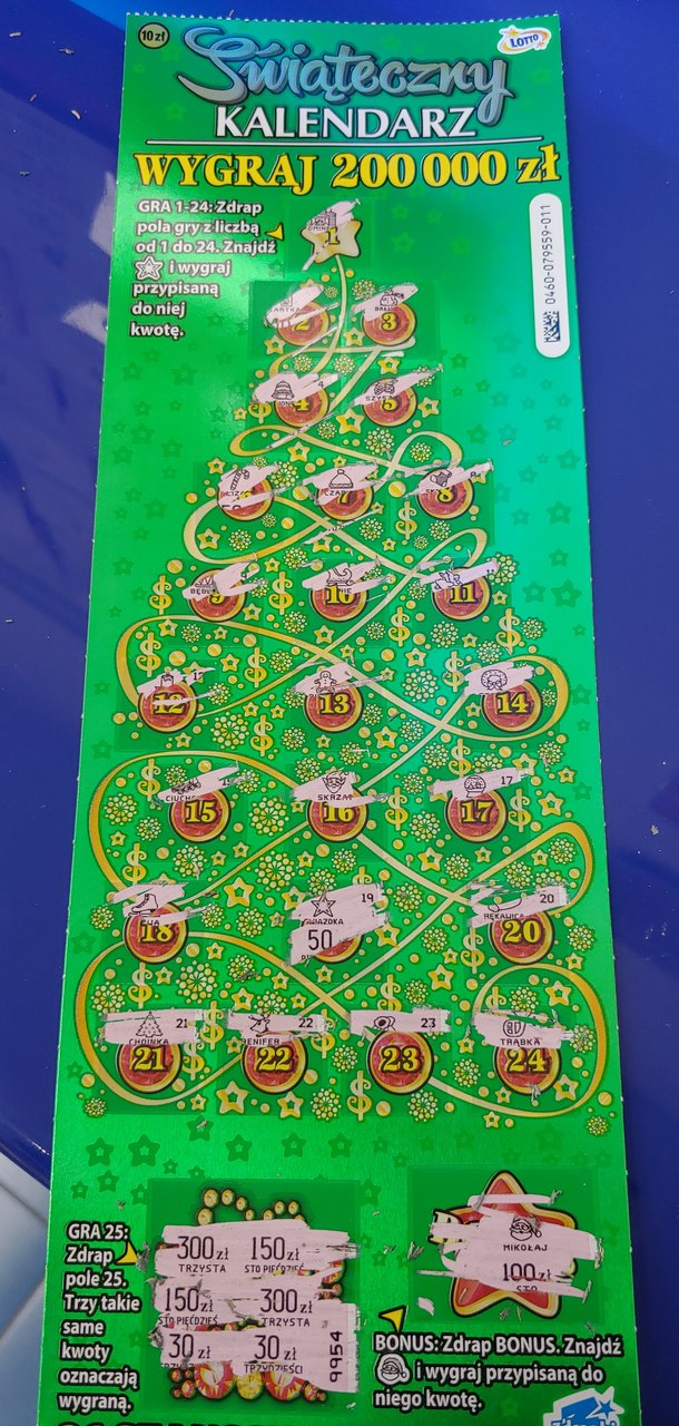 Ja dziś w rzadko odwiedzanym punkcie znalazłem kalendarz. Kupiłem 2 sztuki. Jedna pusta ale w drugiej lotto miało refleksję.
