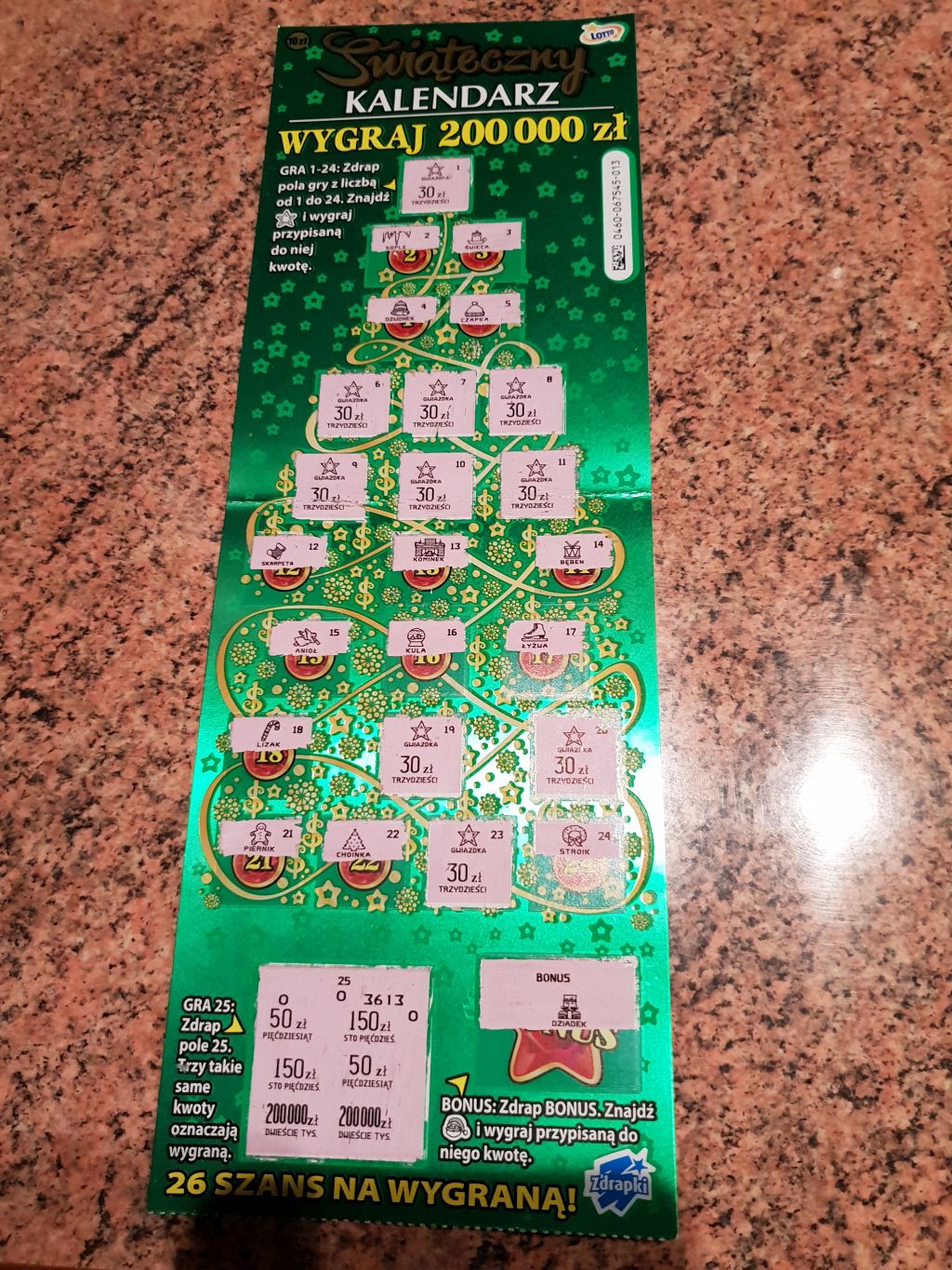 Gratulacje dla użytkownika blank1981 za wydrapanie nagrody IV stopnia 300 zł w zdrapce Świąteczny Kalendarz [460].