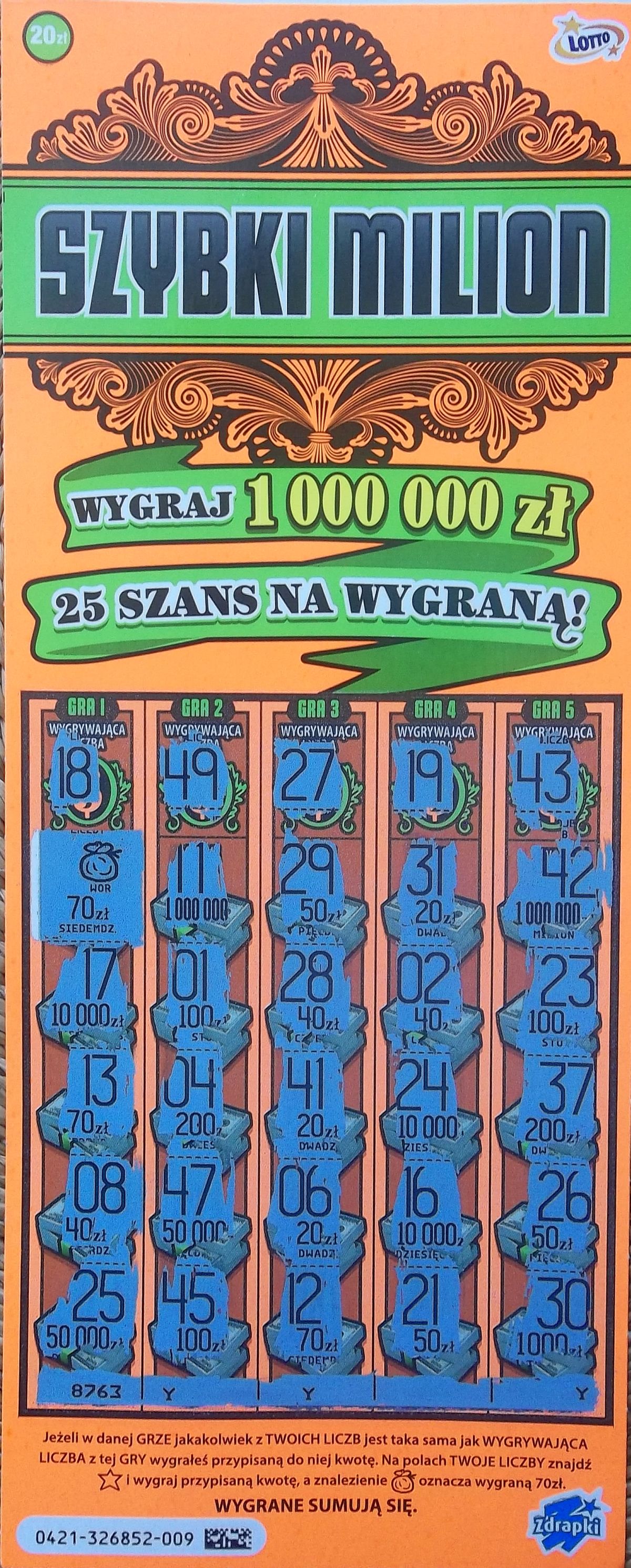 Ok. 650000 losów z czego co najmniej 400 000szt to są jeszcze pomarańczowe, moim zdaniem biorąc pod uwagę cenę to tej zdrapki jeszcze dużo zostało, a niektórzy już ją biorą na potęgę
