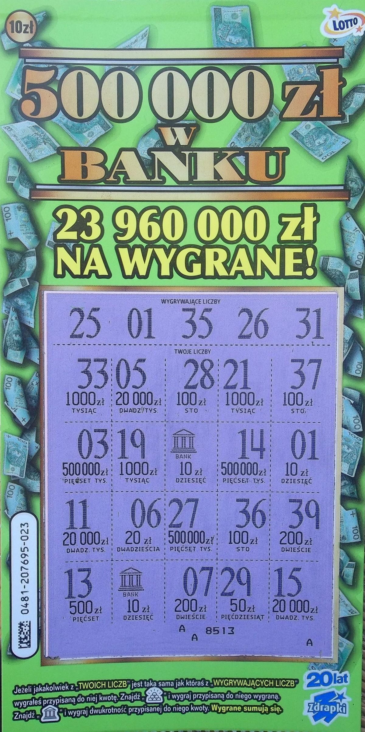 Dzięki wielkie no jakoś nie umiem go dorwać chyba nie jest mi pisany .Ale za to ja życzę Tobie już od zeszłego roku tego miliona i wciąż czekam i wierzę że się uda.Masz bardzo dobrą rękę do zdrapek także wpadnie wygrana bardzo szybko.Pozdrawiam serdecznie