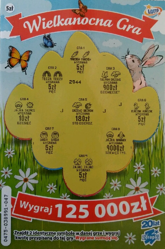 Już po świętach a nawet pełne 2 miliony losów nie zeszły i chyba nawet gorzej się sprzedaje niż rok temu. W sumie ta sama śpiewka co z kalendarzem, za duży nakład, Wielkanocną było zrobić 2 mln i wrzucić 3-4 tygodnie później i również by się sprzedała i do świąt spokojnie by jej starczyło.