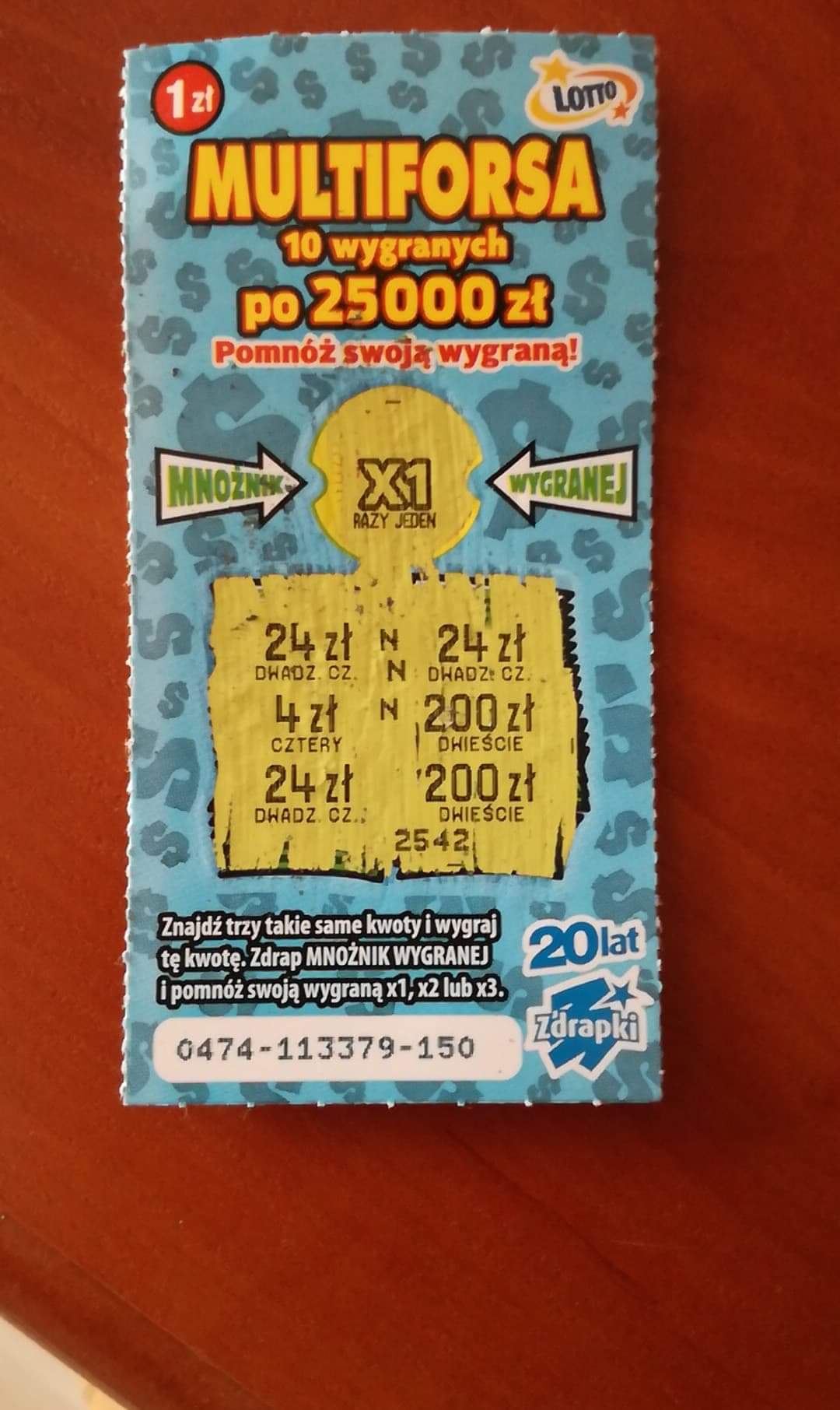W ostatnim czasie mało biorę zdrapek za złotówkę, ale Multiforsę kupuję chyba najczęściej. Do tej pory nie szło mi w niej za dobrze ale dziś udało się wreszcie trafić 12 zł