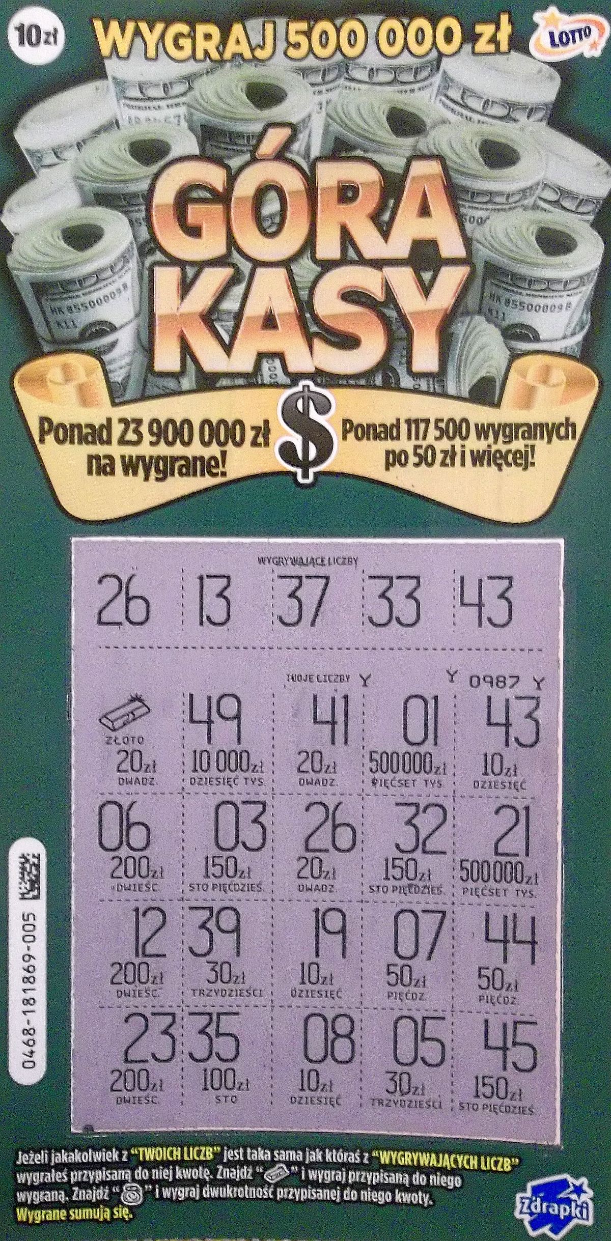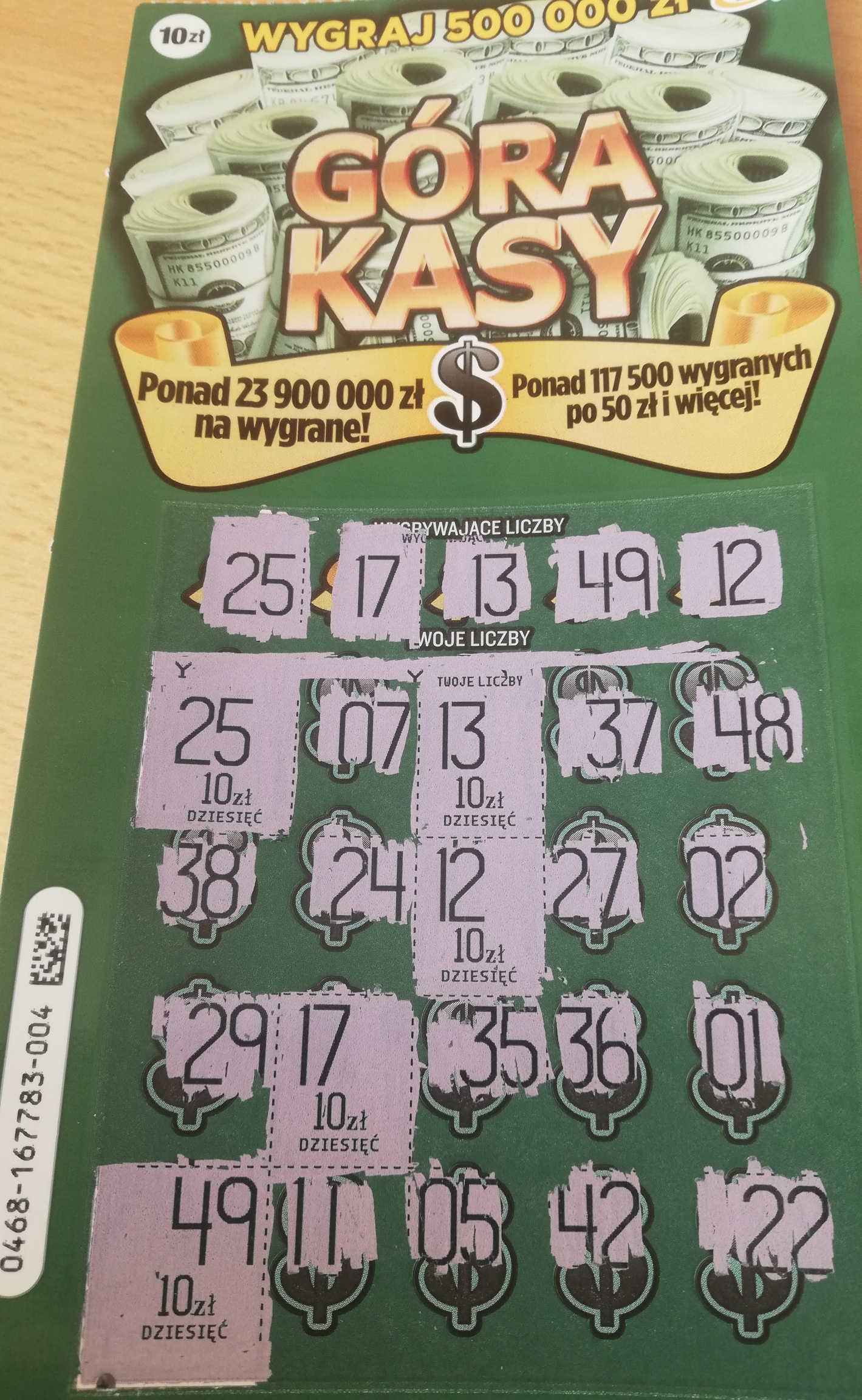 Z przebranej już paczki i z pięciu ostatnich sztuk wybrałam nr 005, w którym siadło 50 zł