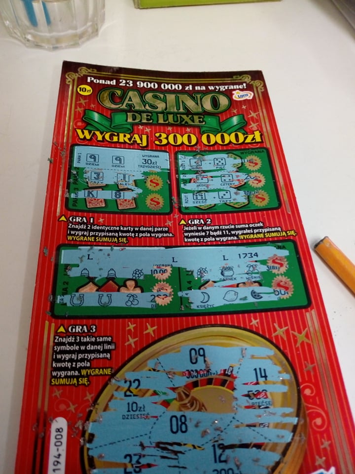 Końcówka tej zdrapki sobie leżała swobodnie - nikt nie chciał tego kupić