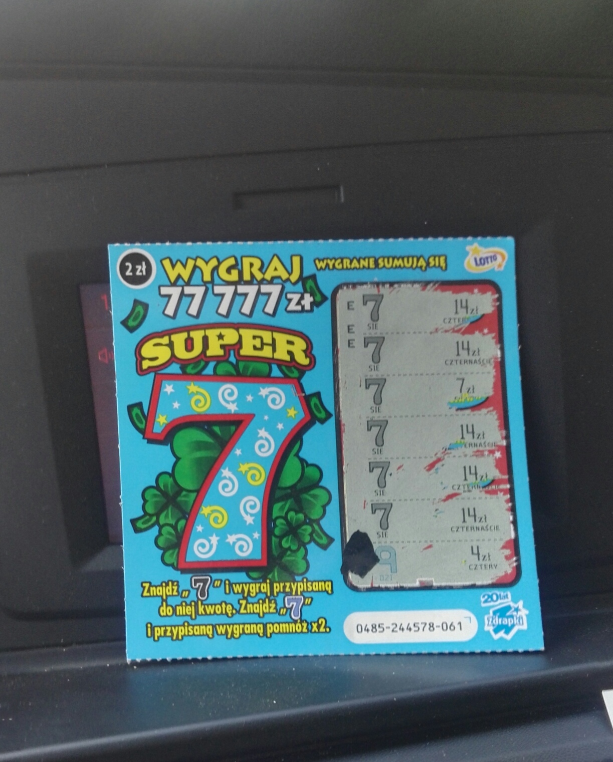 Kupiłem przed chwilą siedem sztuk, ale dzisiaj ich nie ruszam. Jak zdrapię dam znać co i jak.