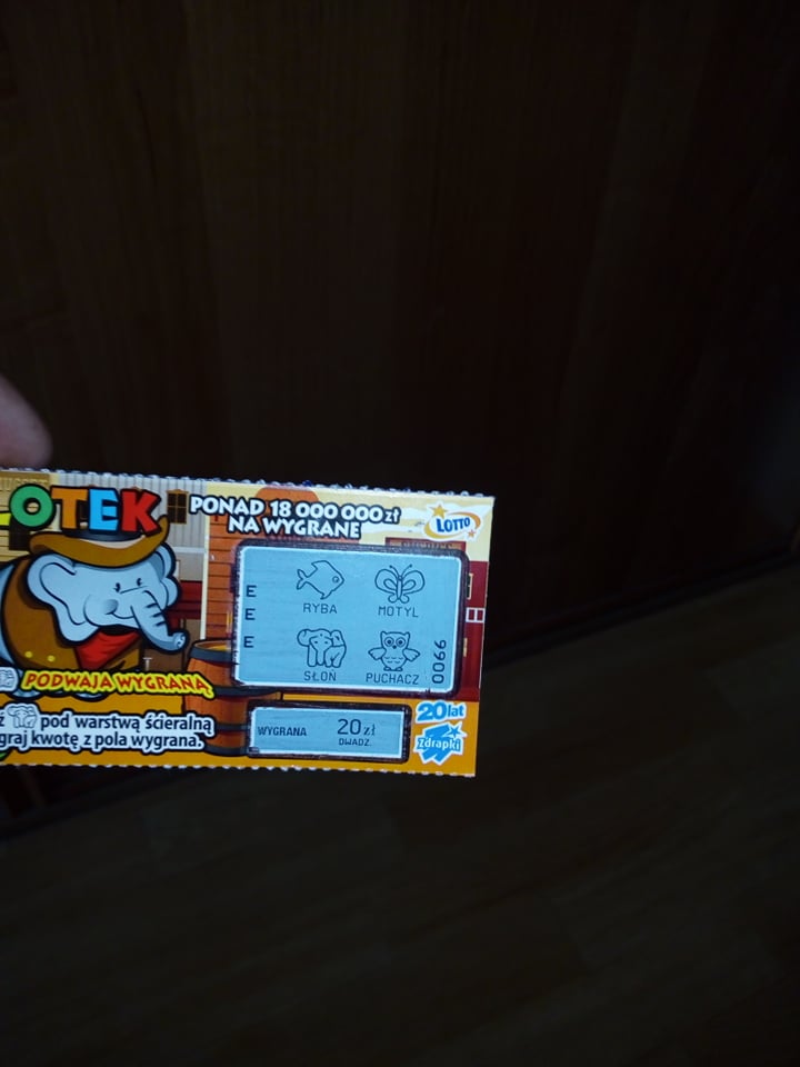 Kupione 11 słoników (w jednym punkcie). Tylko jedna zdrapka wygrana: