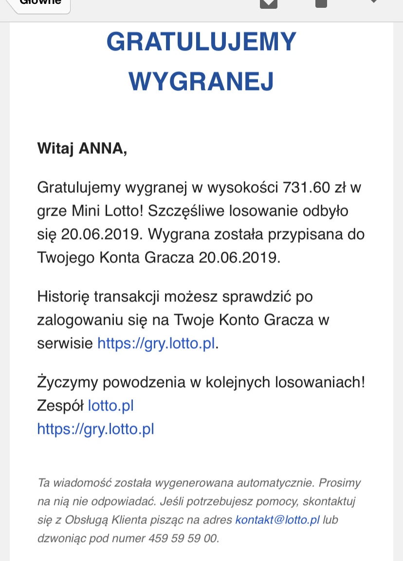 Ps. Co ciekawe - nie weszla mi ostatnia liczba w losowaniu