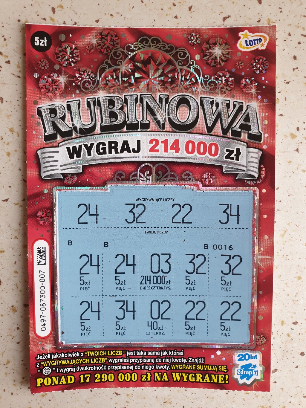 U mnie zaskoczenie, bo jednak nie nastawiałem się na 40zł a je trafiłem. Wpierw wziąłem 2szt i wpadło na jednej 5zł (SSS), a potem te 5zł wymieniłem w innym punkcie na kolejną i wpadło 20zł pod rubinem