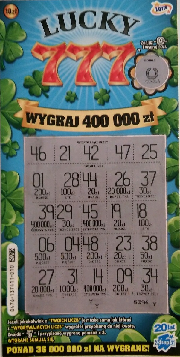 Dziś przy wymianie zdrapek z wczorajszego dnia wzięłam dwie Lucky 777 z nowej paczki, numerki obok siebie 021 i 022, pomyślałam sobie, że może coś w którymś będzie siedziało.No i siedziało