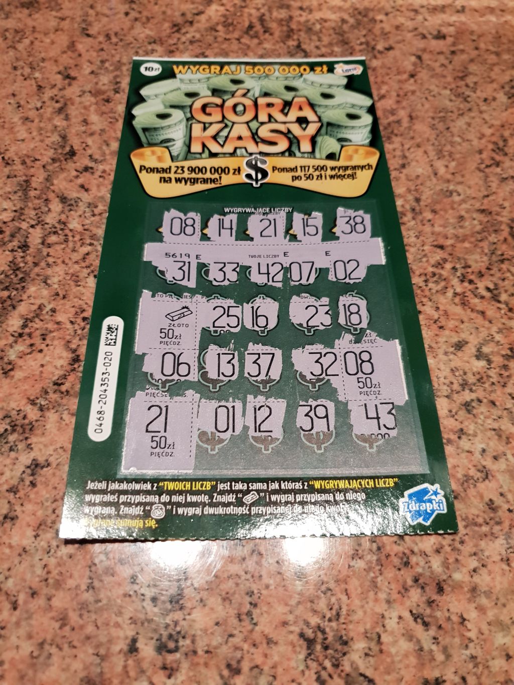 Mnie ta zdrapka nie lubi na ostatnie 6szt nic nie trafiłem