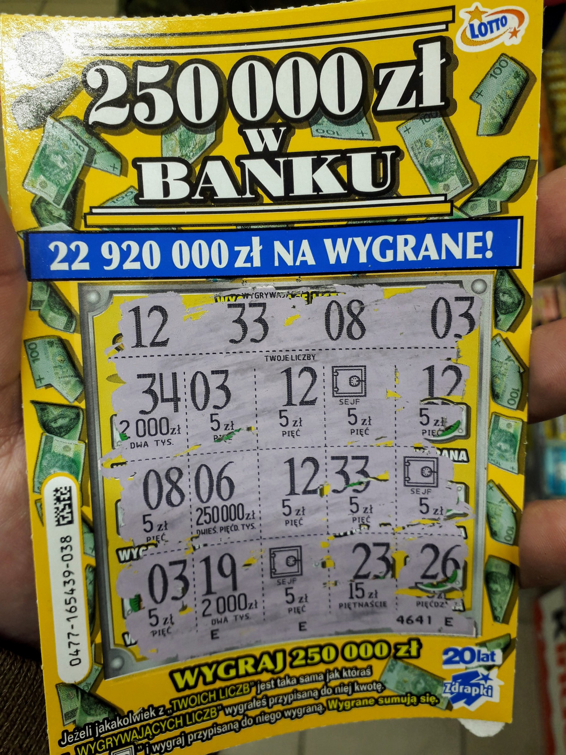 Widzę, że trochę zapomniana zdrapka, to wrzucę jakąś drobnicę, często w niej miewałem tzw. ćwiartki czyli 25 zł, dyszki wpadały