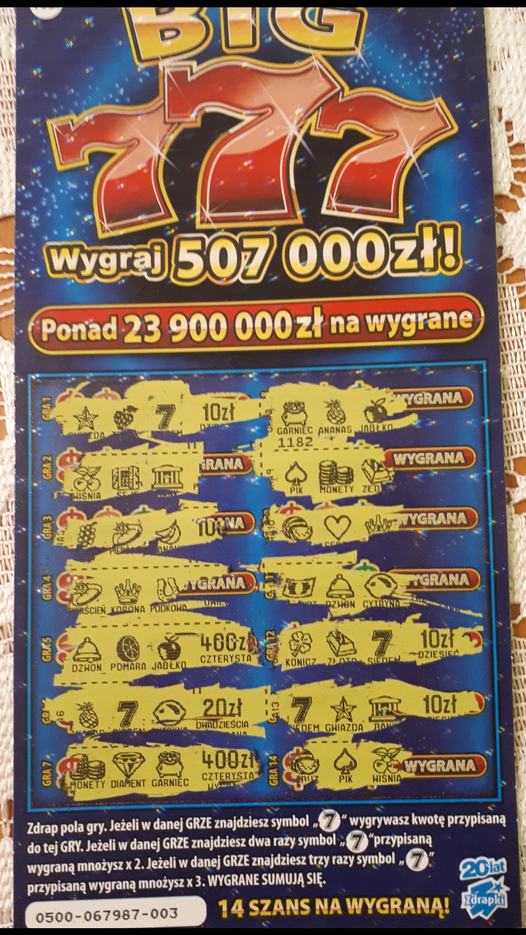Chyba niezbyt dobrze idzie z tą zdrapkę, dobrze, że jakieś 50-tki padają.