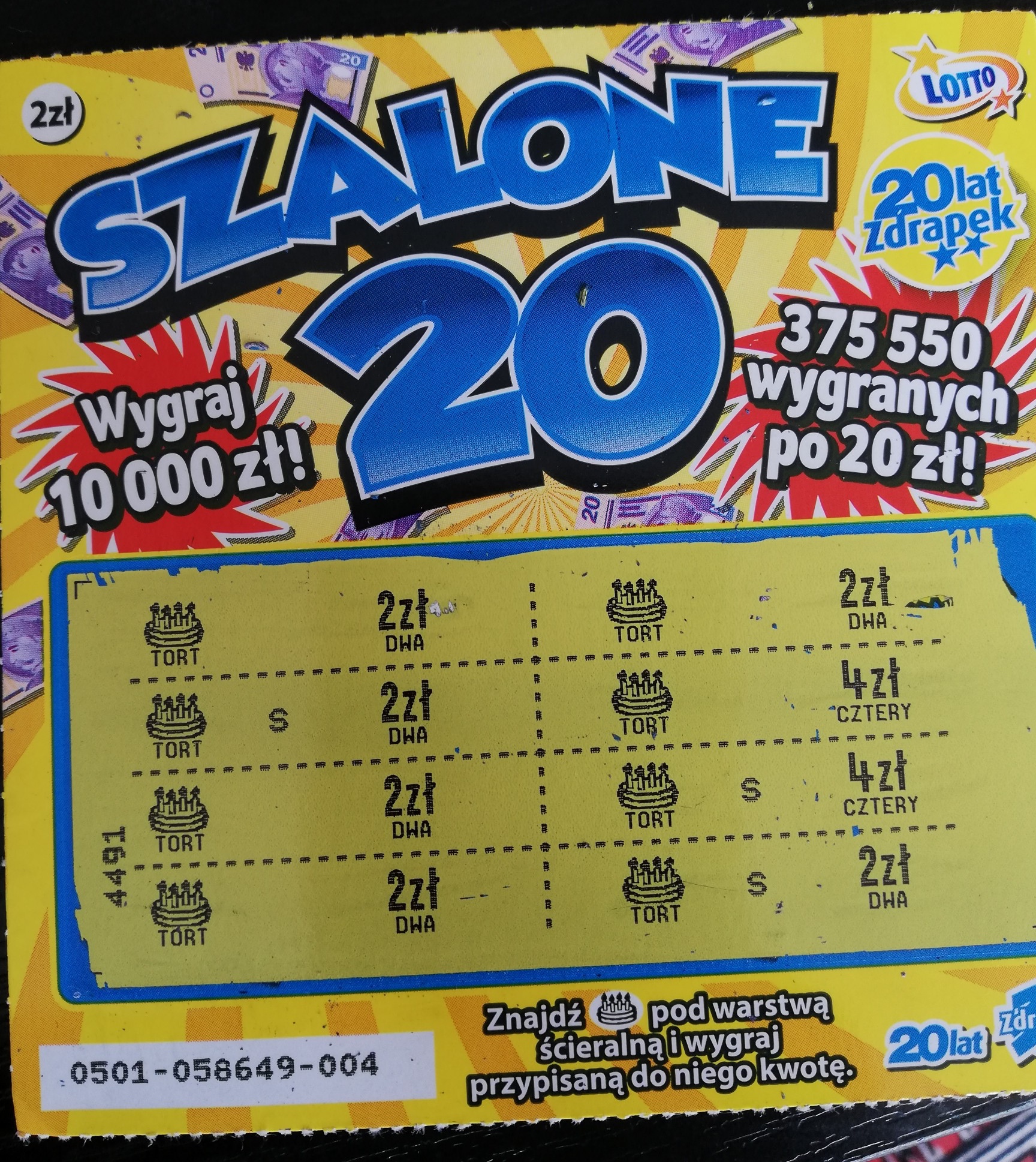 Ładnie 8-) Ta zdrapka ewidentnie powinna sie nazywać Szalone 0 albo Szalony Tort - znalezienie tortu graniczy z szaleństwem