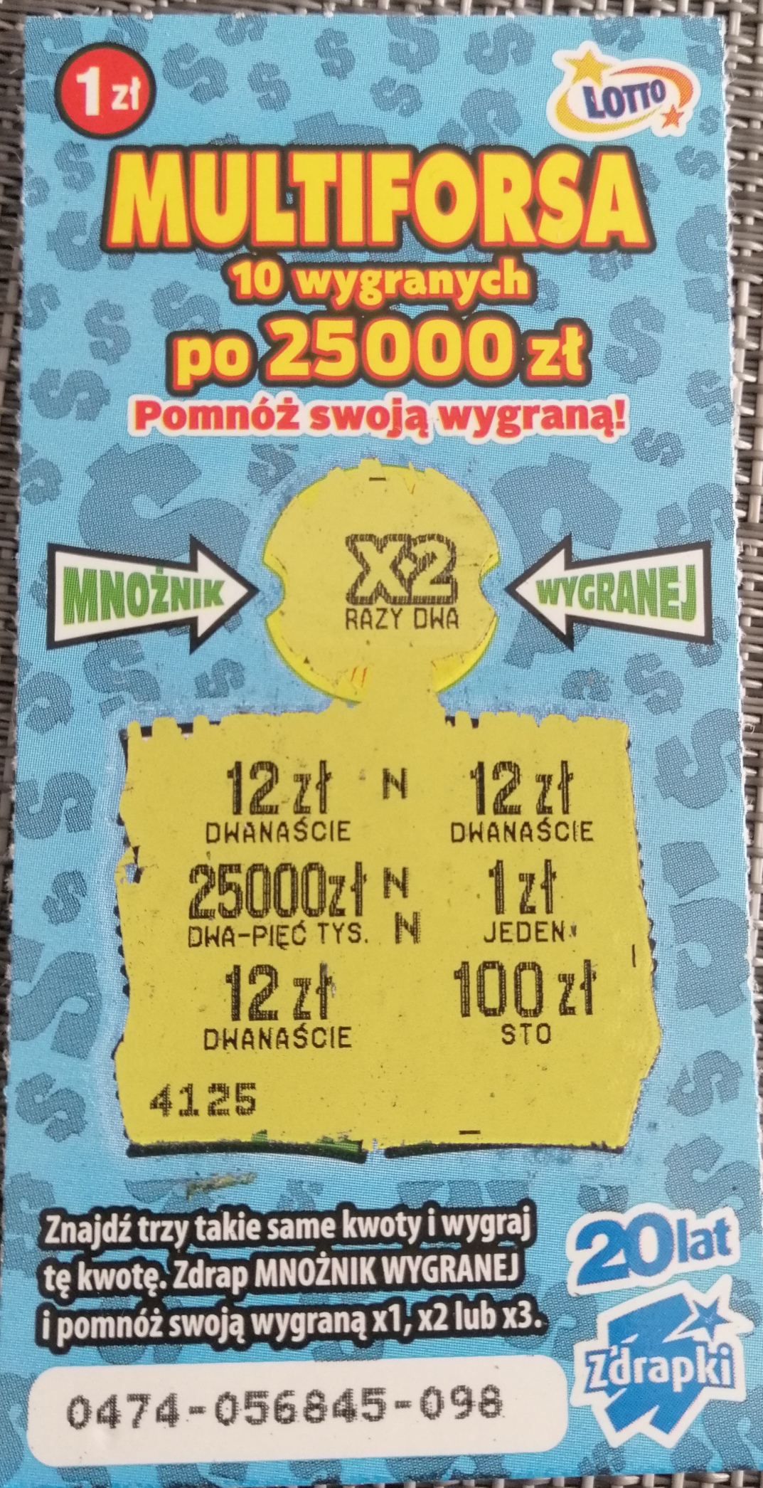 Na przekór zdrapce za 20zł w której nic nie miałem, wziąłem jeszcze dzisiaj 20x multiforsa i wyszedłem nawet na plus: