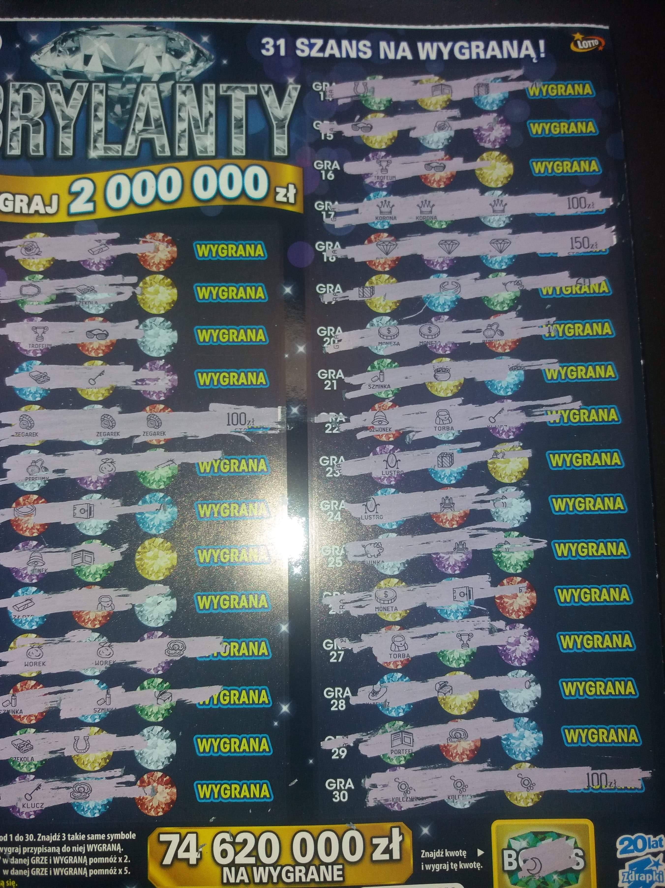 Z jednej strony spoko, zdrapka się zwróciła z nawiązką ale z drugiej strony jest to irytujące, bo kupując zdrapkę z kategorii premium spodziewamy raczej wygranej również premium. A tymczasem częściej idzie trafić 100 zł w zdrapkach z segmentu tych po 10 zł niż w tych droższych