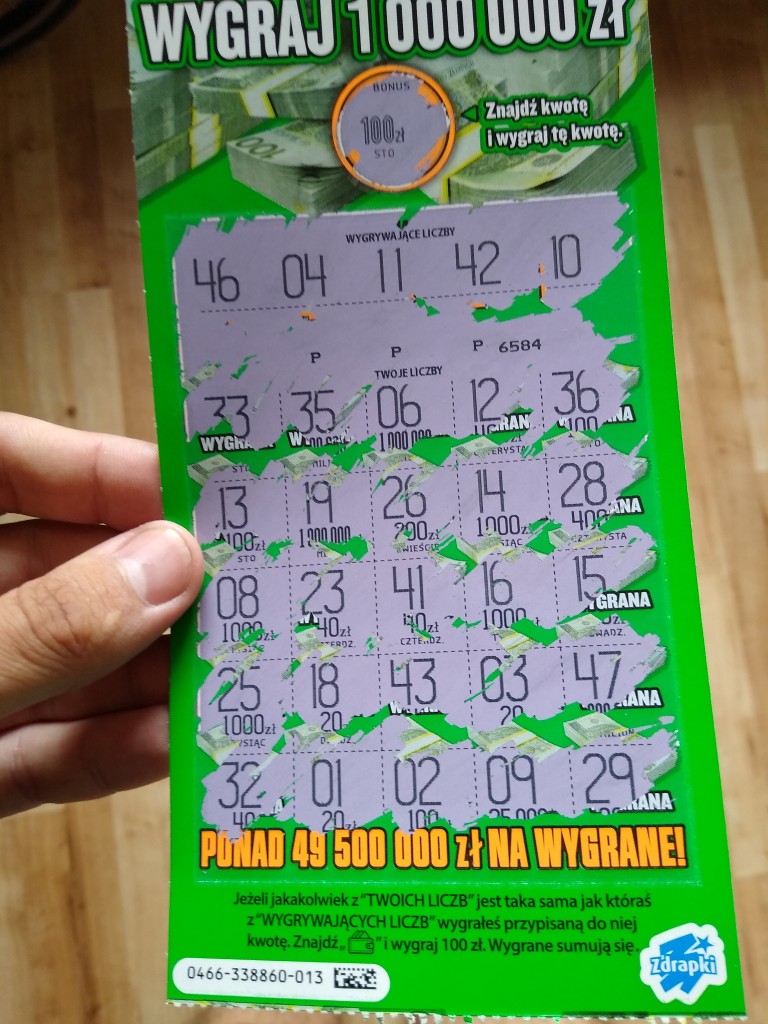 Zainwestowałem 50zl z wygranej i się trafiło 100zdrapka nr 013