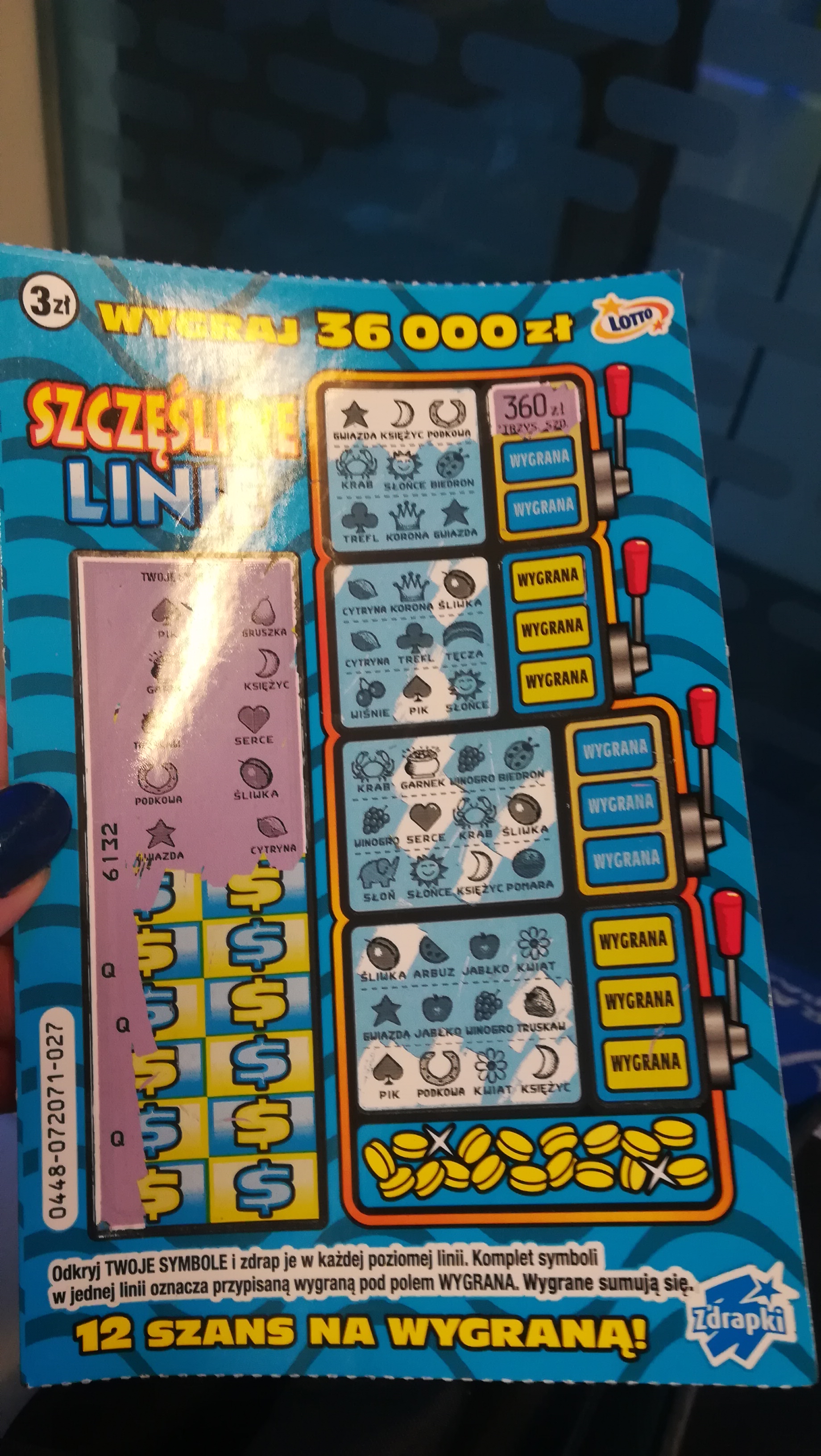 Jakby co kupiłem 3 sztuki a 008 i 009 były puste. To jest moja druga największa wygrana w zdrapkach