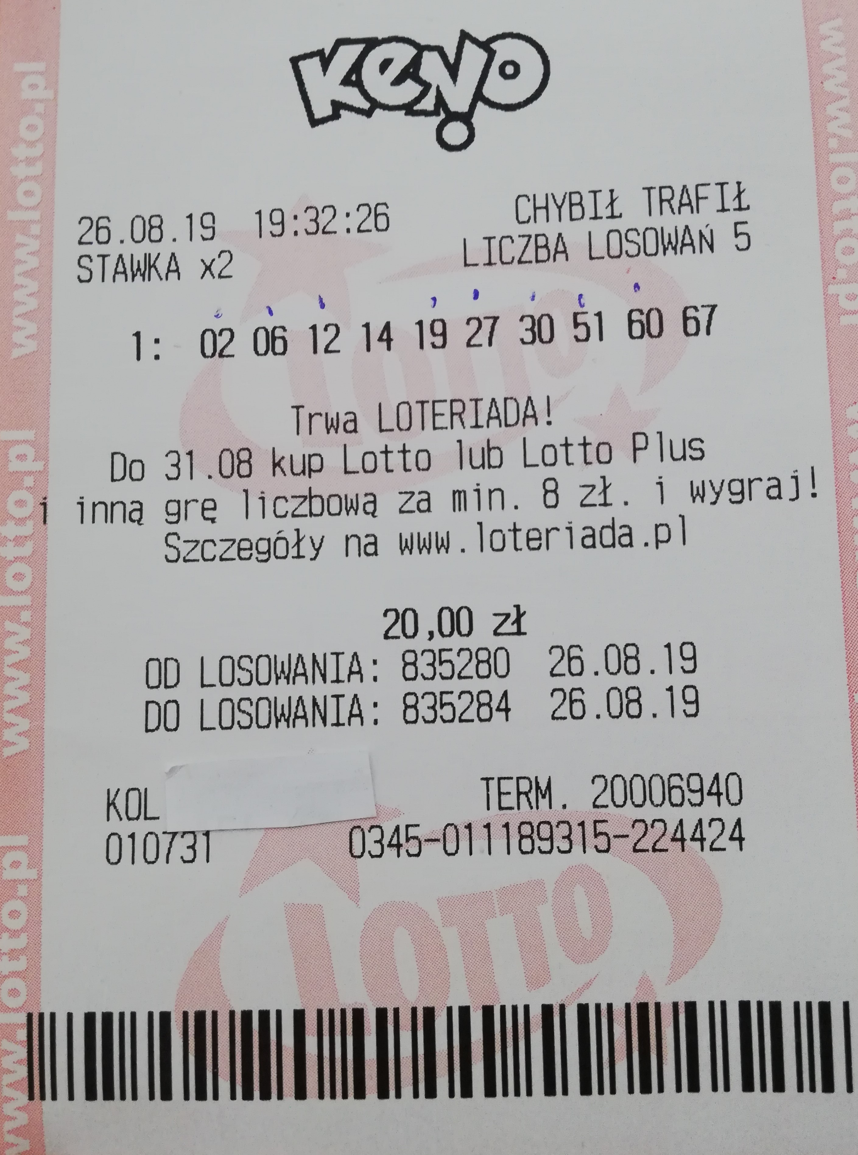 Re: Wygrane w Keno